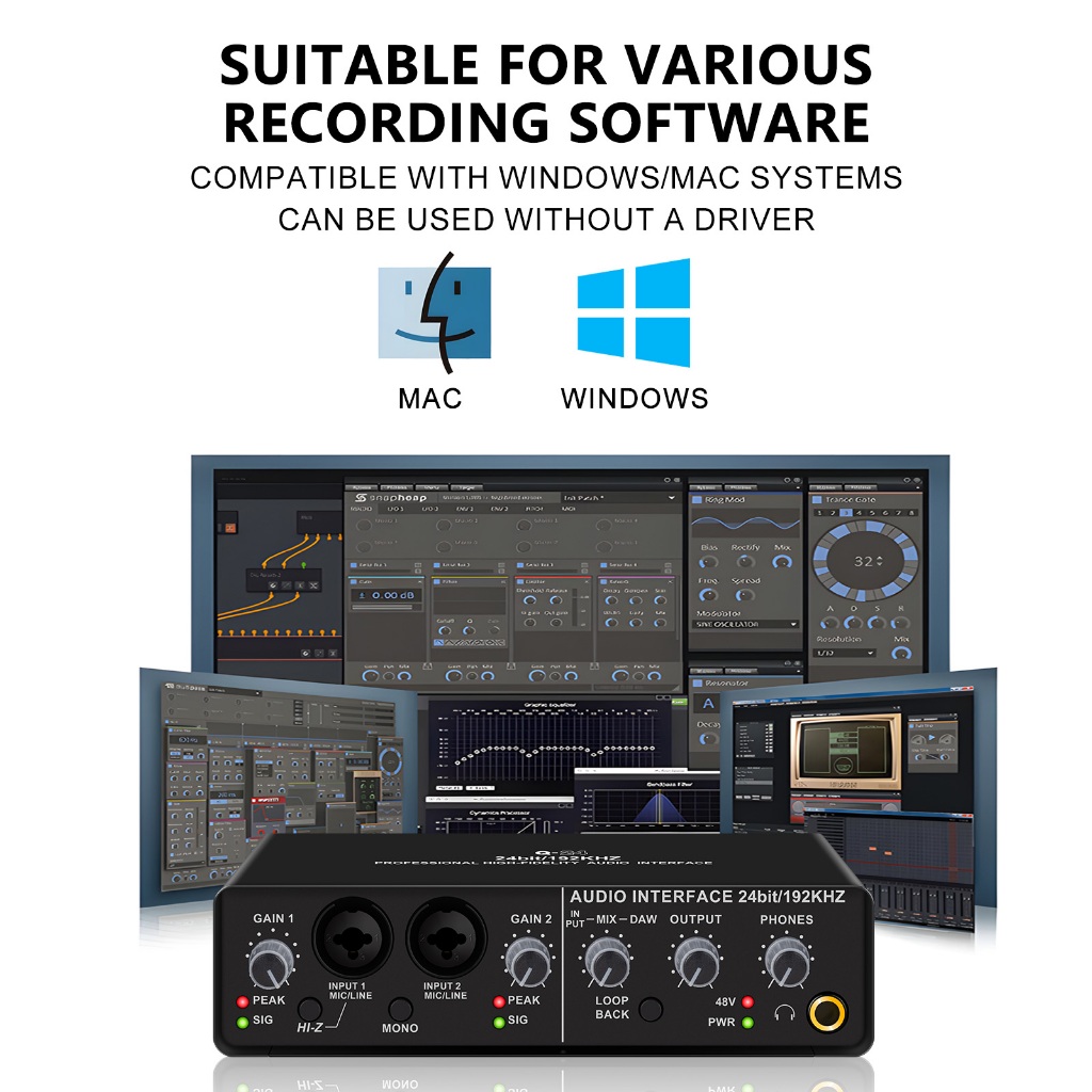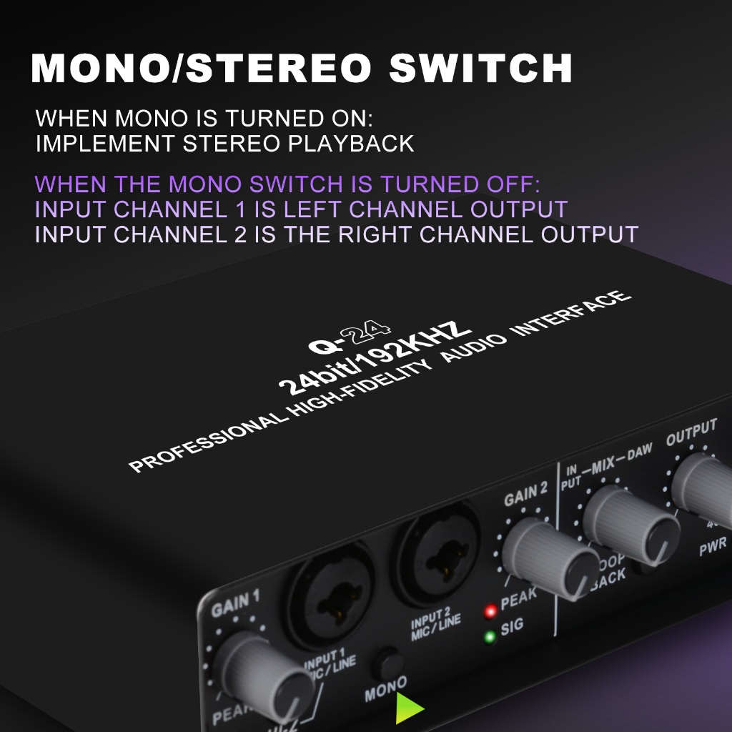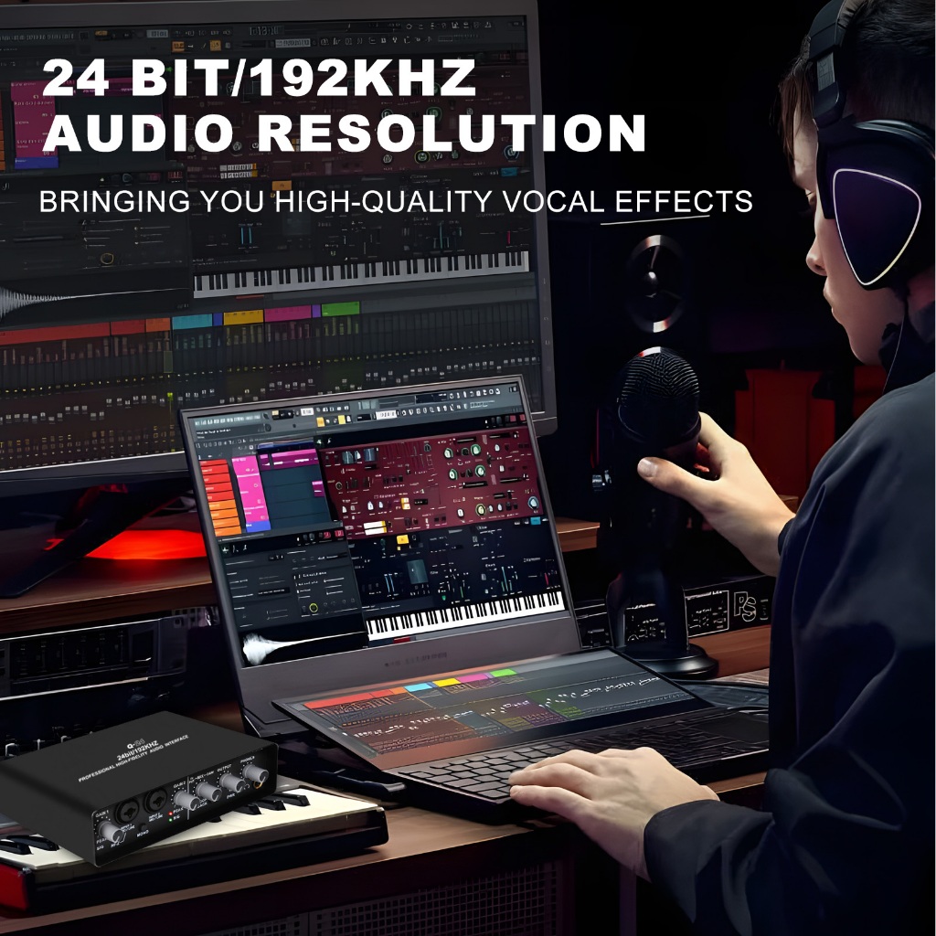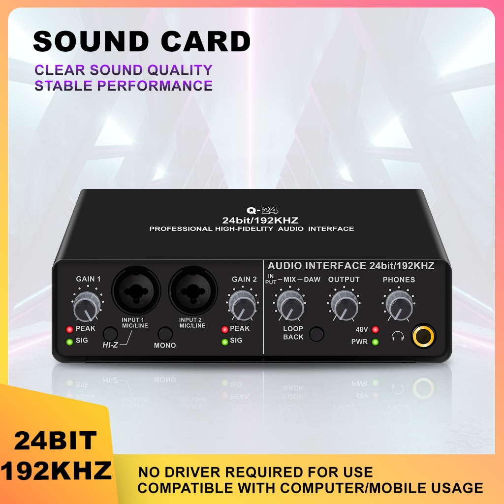 Q24 Audio Interface Professional Sound Card with Monitoring Electric Guitar Live Recording