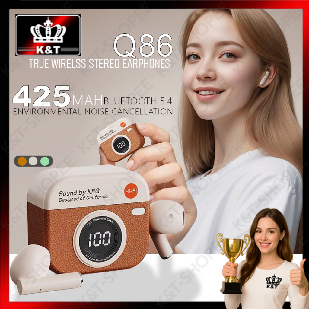 Q86 Wireless Bluetooth Earbuds Retro TWS HiFi Stereo LED Display Waterproof Noise Cancellation