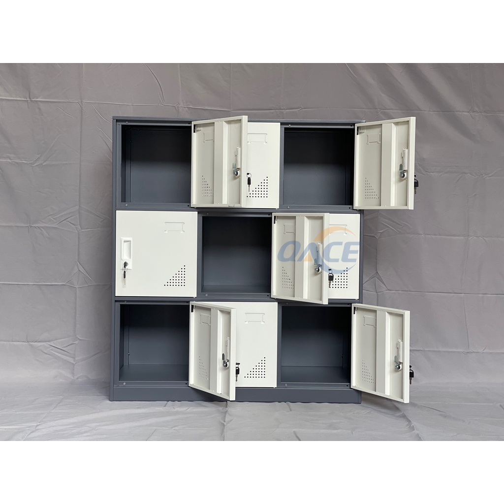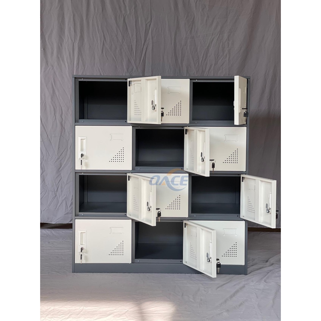 QACE small steel 6,9,12 doors locker white & dark grey color (NOT ASSEMBLED 101*90*40CM)