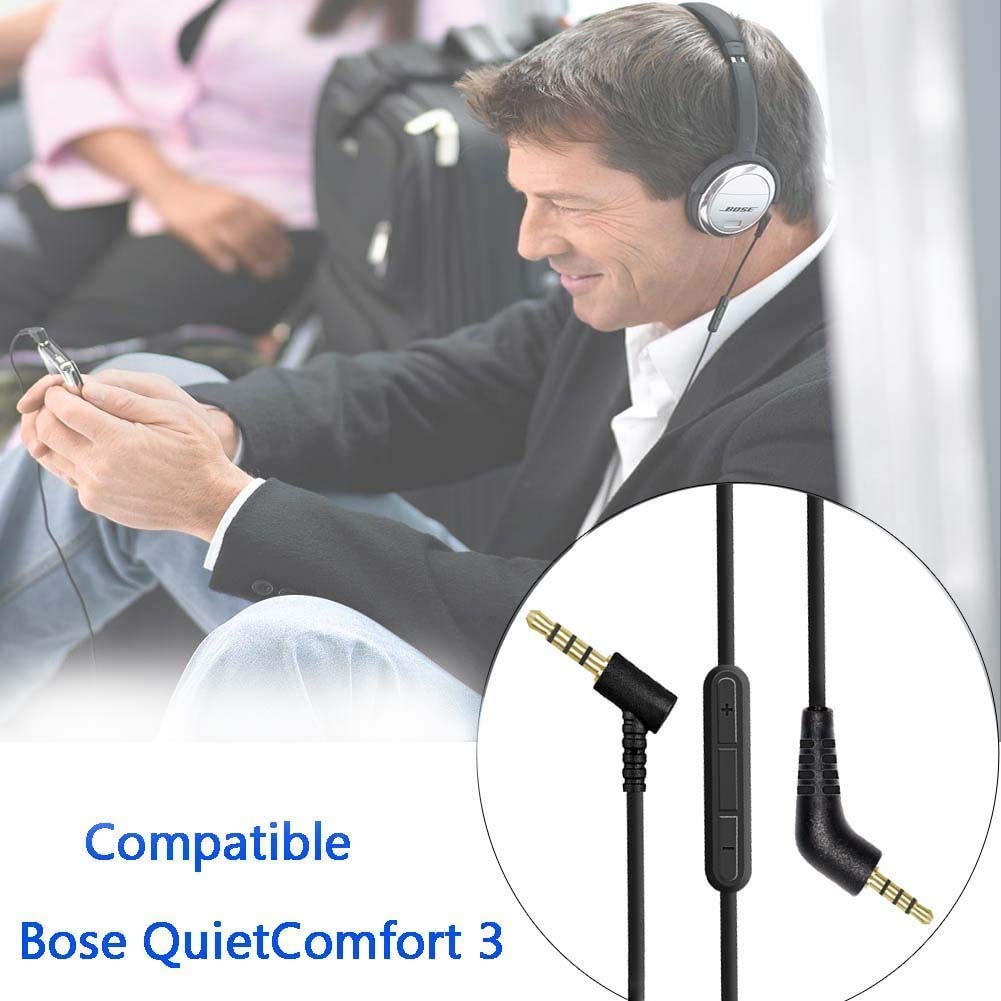 QC3 Replacement Cable for Bose QuietComfort 3 Headphone with Inline Mic Volume Control 3.5mm to 2.5 mm Audio Cord for iOS & Android AUX Cable