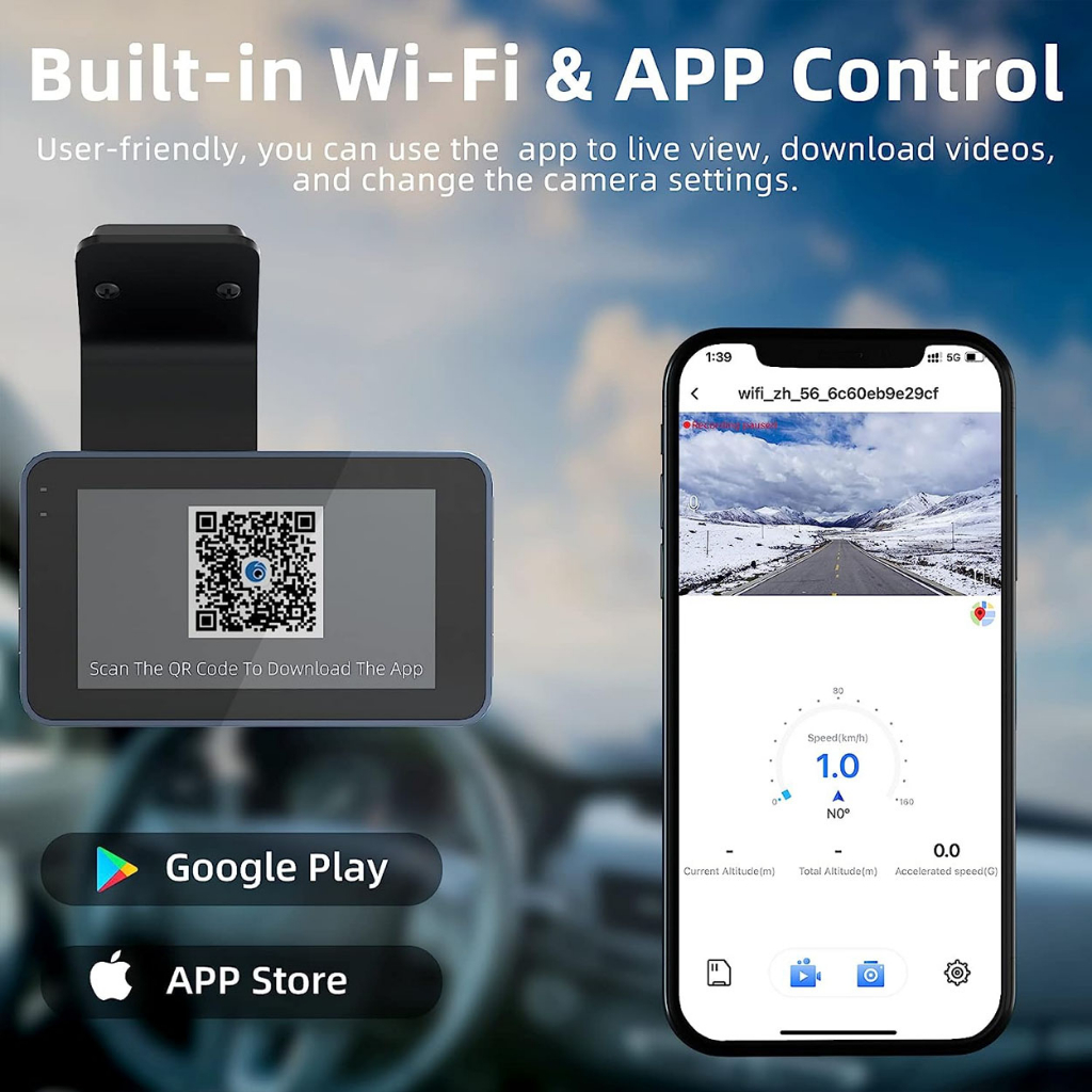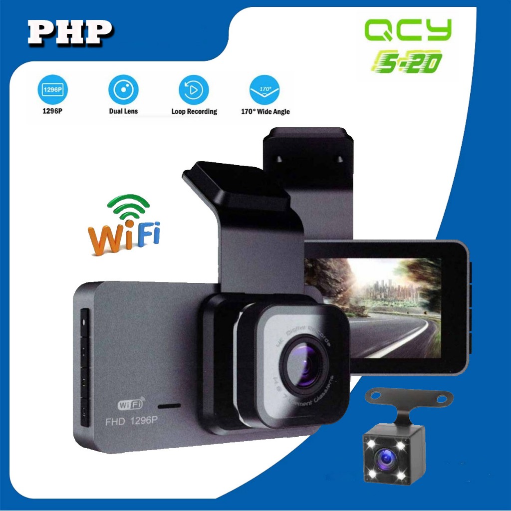 QCY S-20 Dashcam WiFi 1296+1080P Full HD Car Camera Recorder Dual Lens Vehicle Blackbox DVR