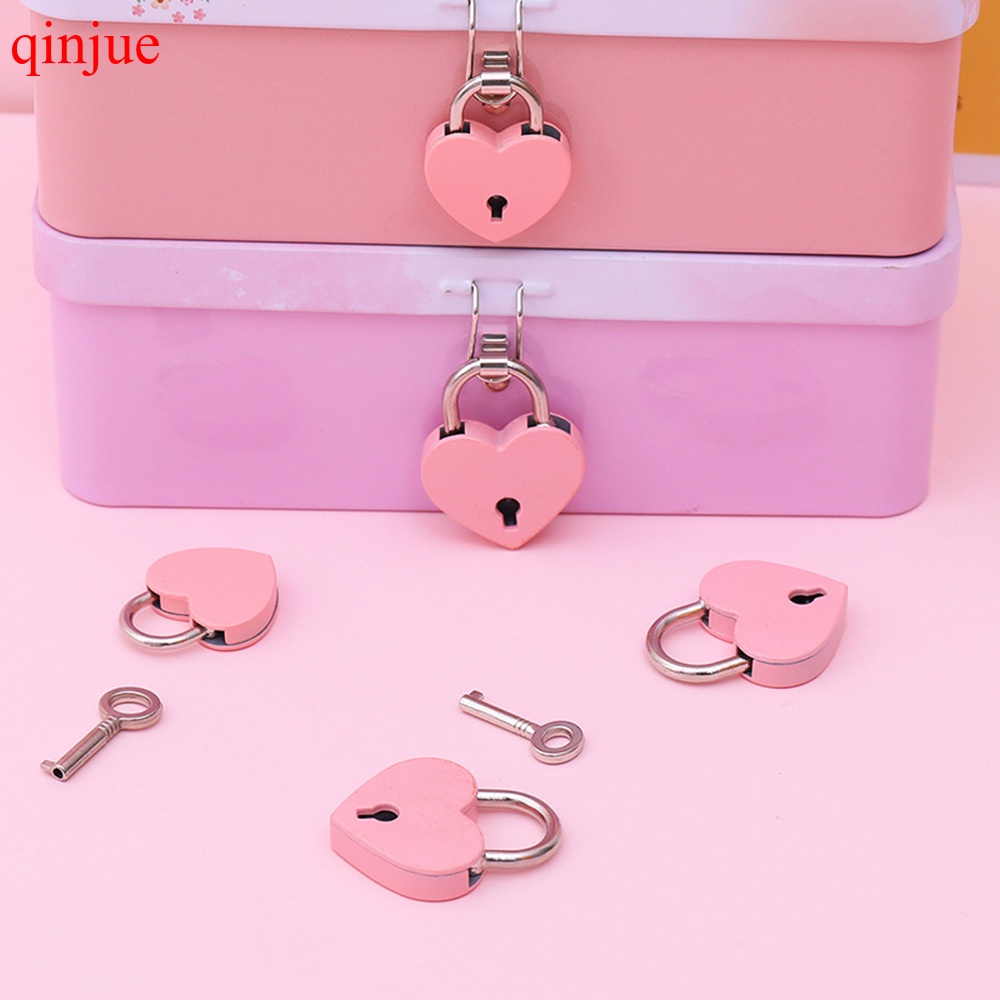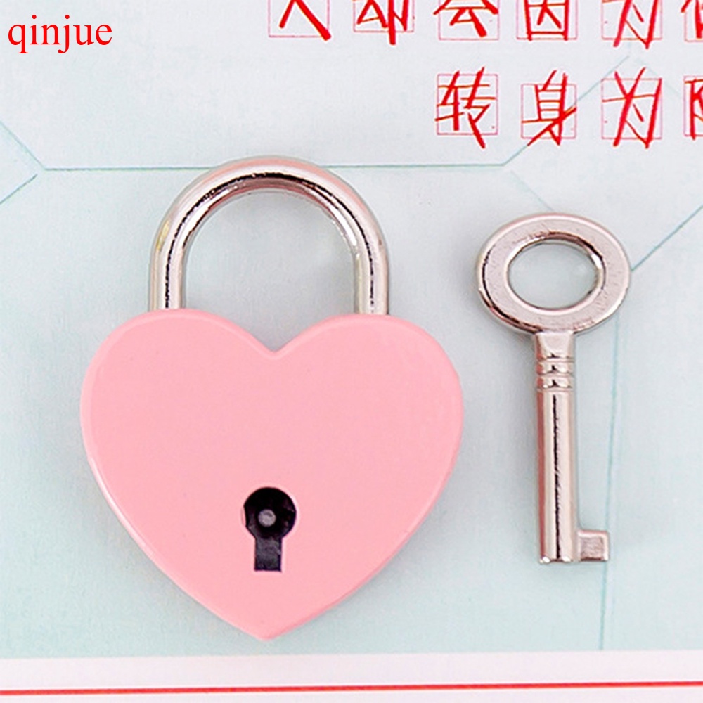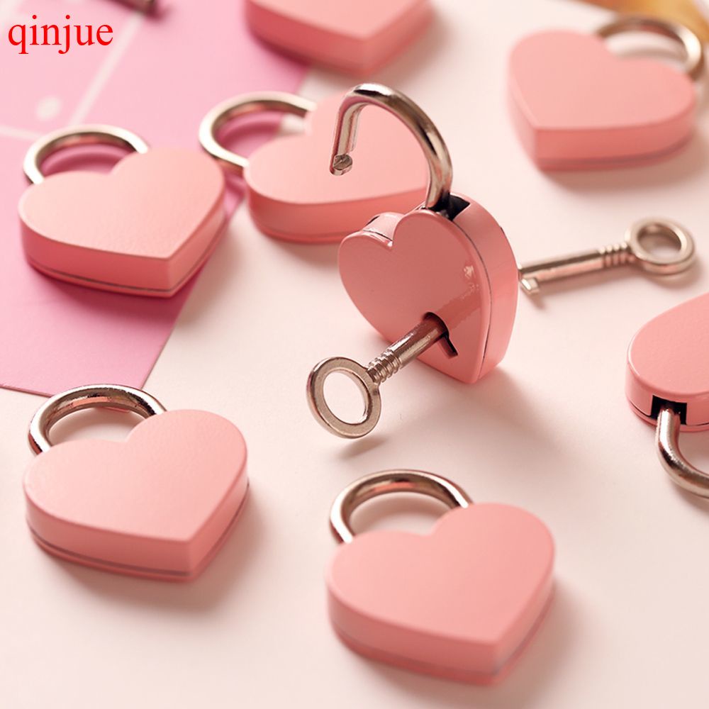 QINJUE Antique Style Heart Shape Padlock Vintage Lock Pink Romantic Lovely Diary Padlocks Key Lock With Key