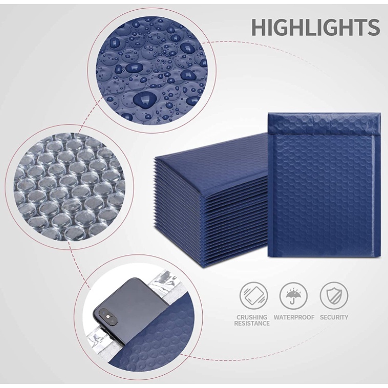 5pcs Navy Blue Waterproof Bubble Mailers Shipping Padded Envelopes for Small Items
