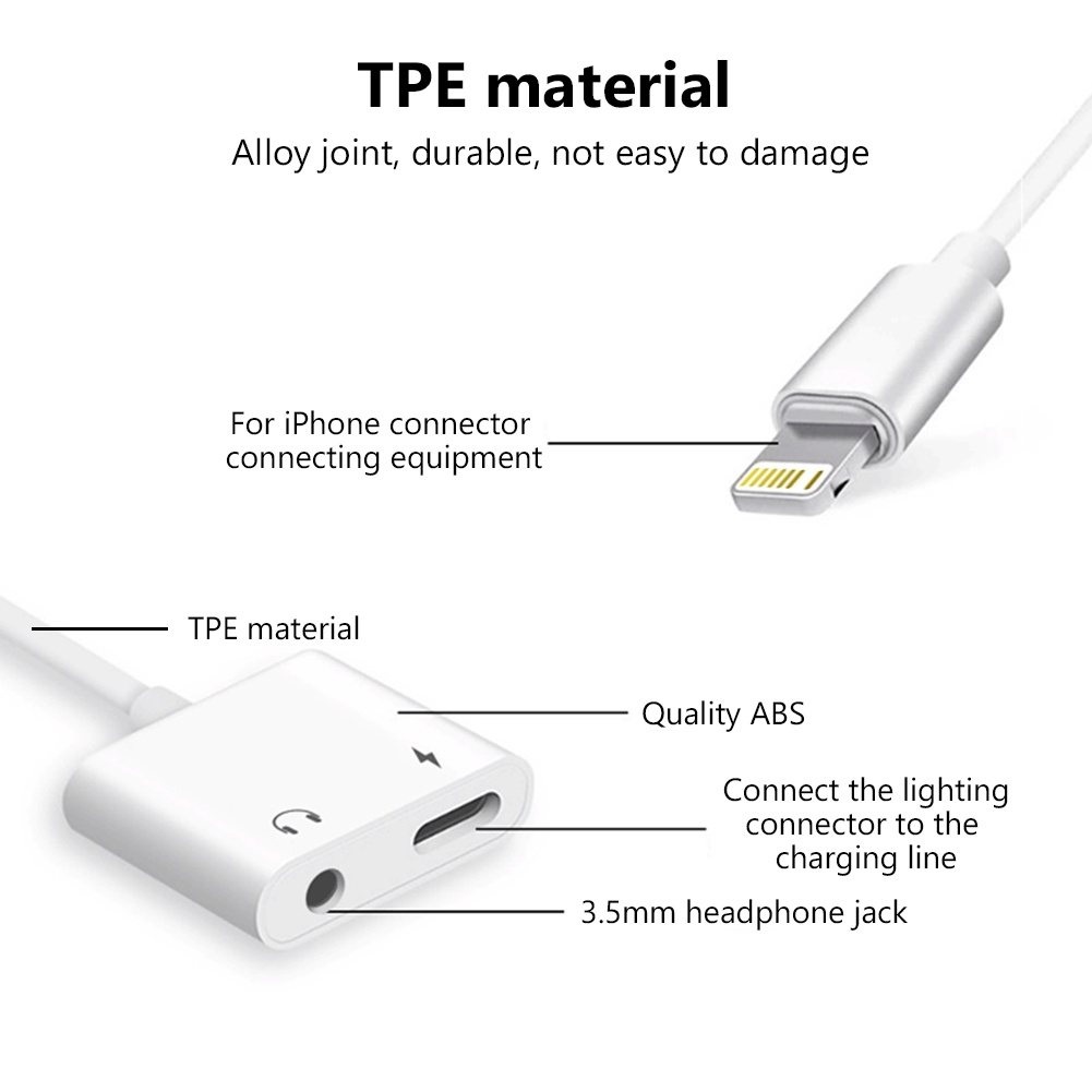 QKZ 2 In 1 Audio Adapter Aux Splitter Jack Charging and Audio Earphone Cable 3.5mm