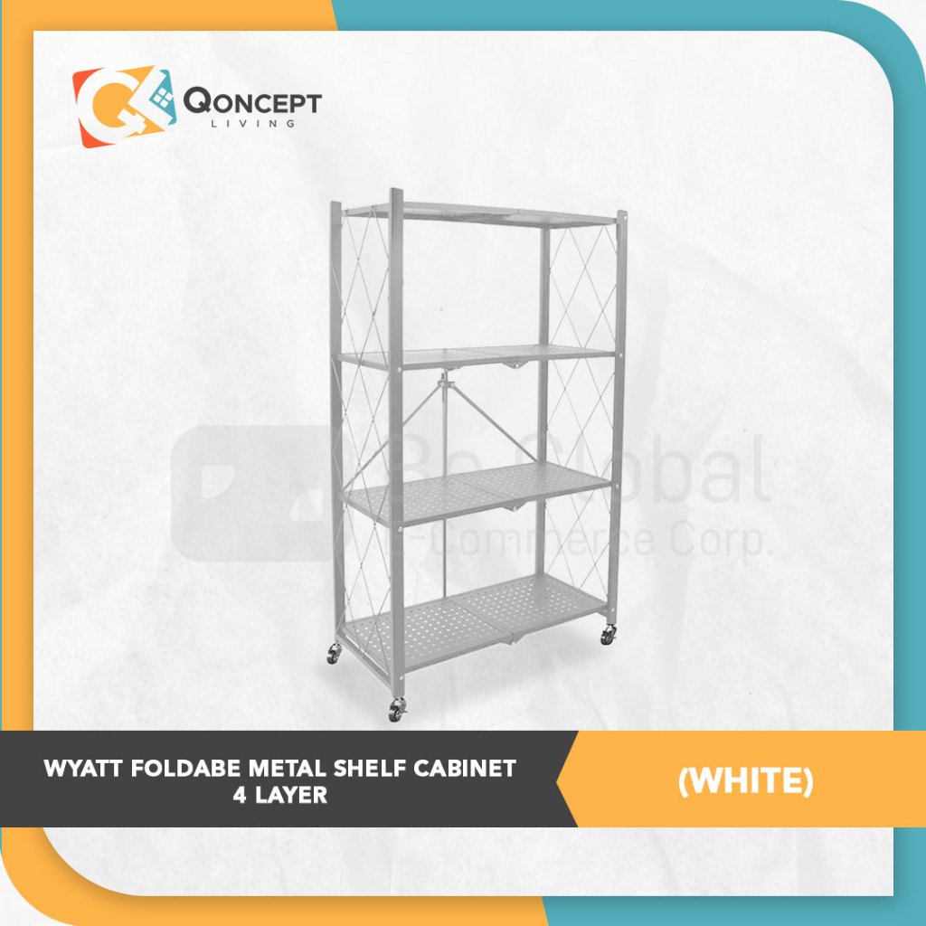 Qoncept Living Wyatt 3-Layer Foldable Metal Shelving Storage Organizer with Wheels