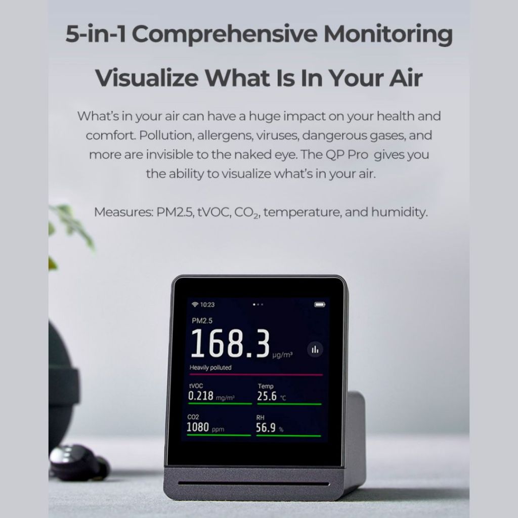 QP PRO 5in1 Portable Air Quality Sensor Monitor (CO2 Sensor, VOCs, PM2.5, Temperature, Humidity)
