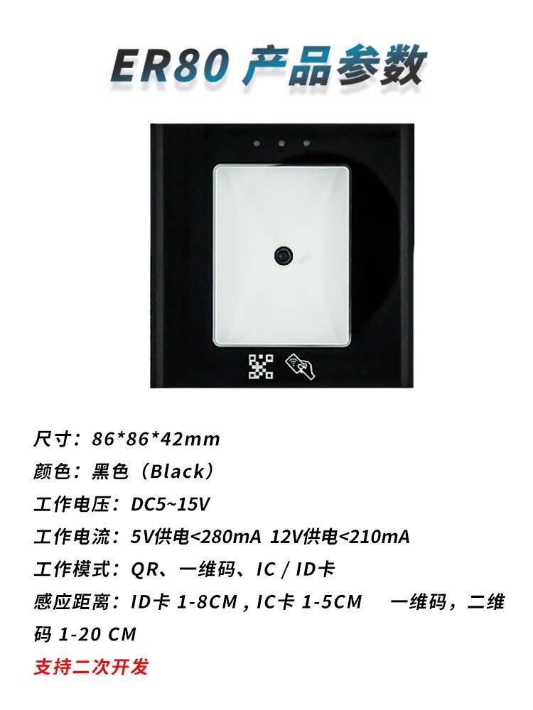 QR Code Access Control Card Reader Swipe Second Generation ID Card IC ID Card RS485WG Embedded