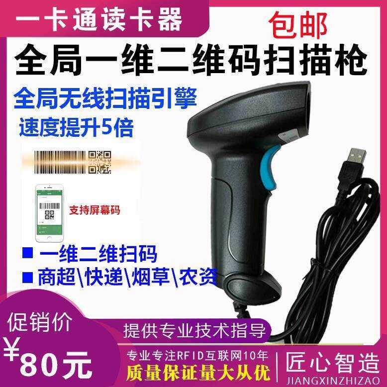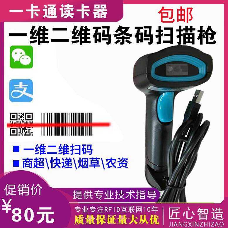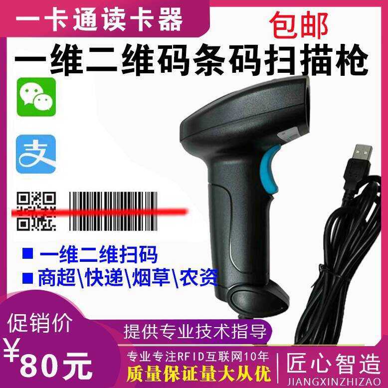 QR Code Scanner Gun Supermarket Cashier WeChat Payment Scanning Device for Express Delivery and