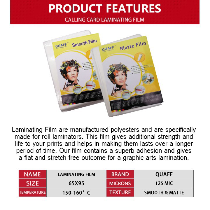 QUAFF CALLING CARD LAMINATING FILM SMOOTH //MATTE FILM A4 (100SHEETS)