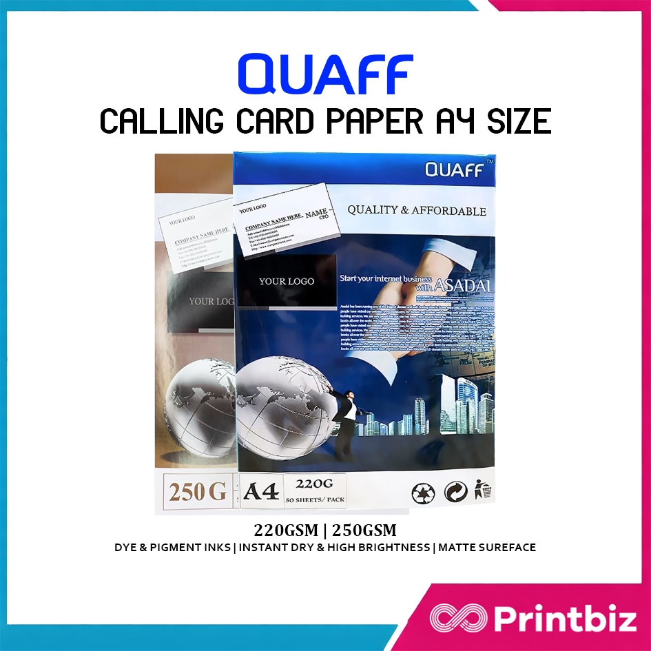 QUAFF Calling Card Paper A4 Matte 220GSM & 250GSM (50 Sheets of Matte Paper)