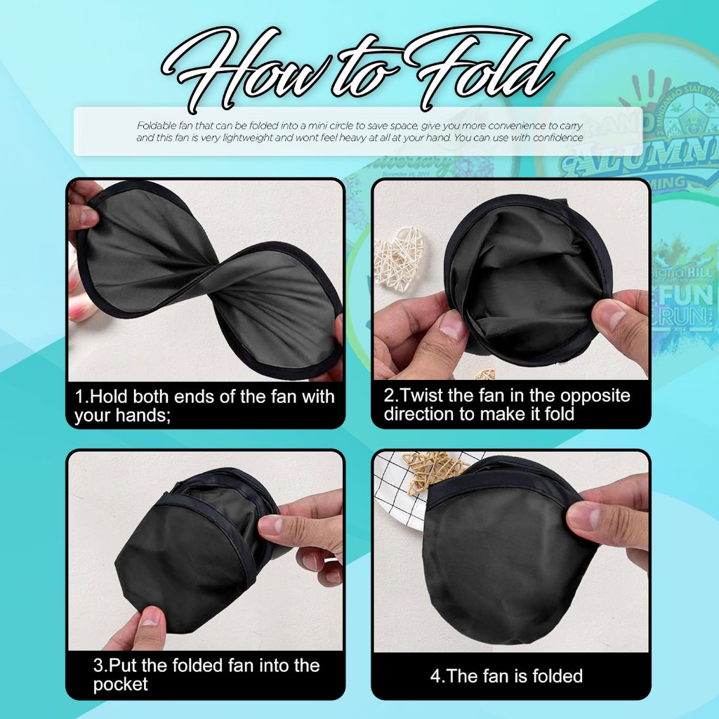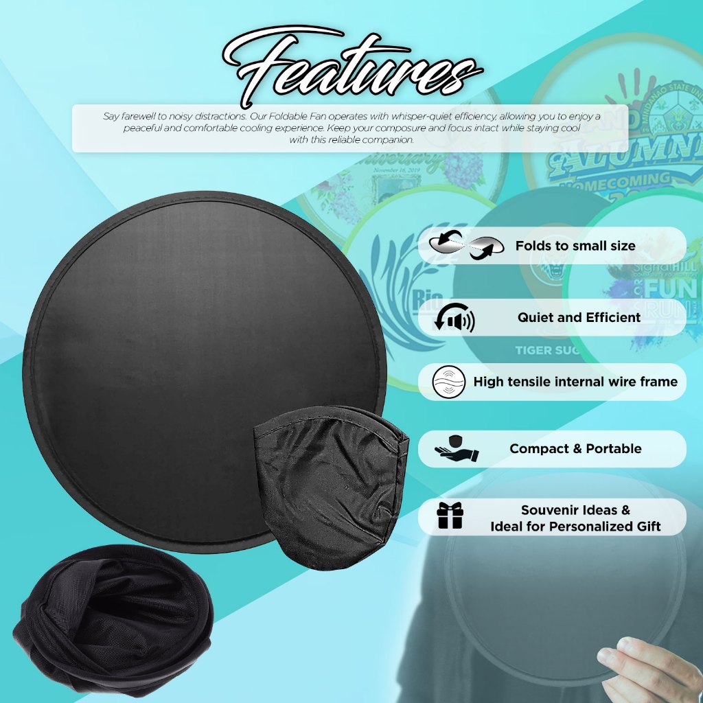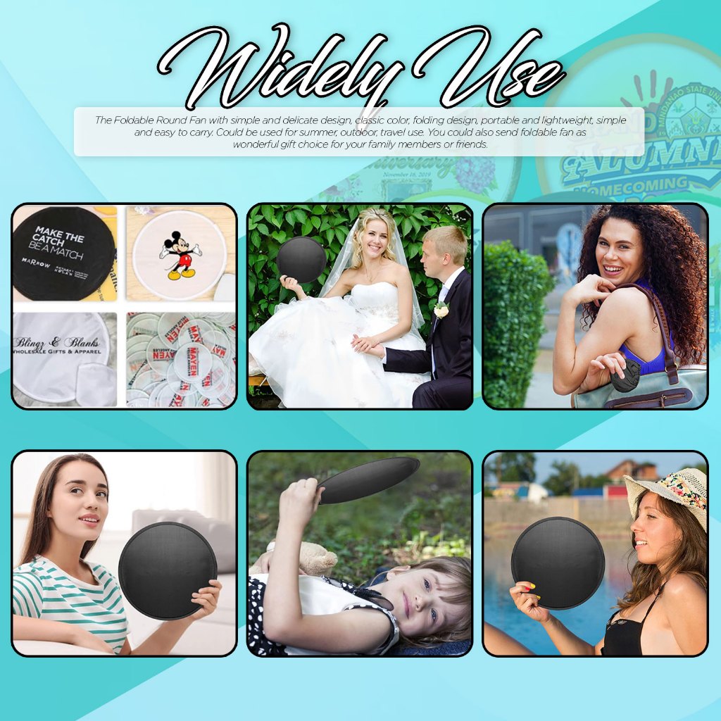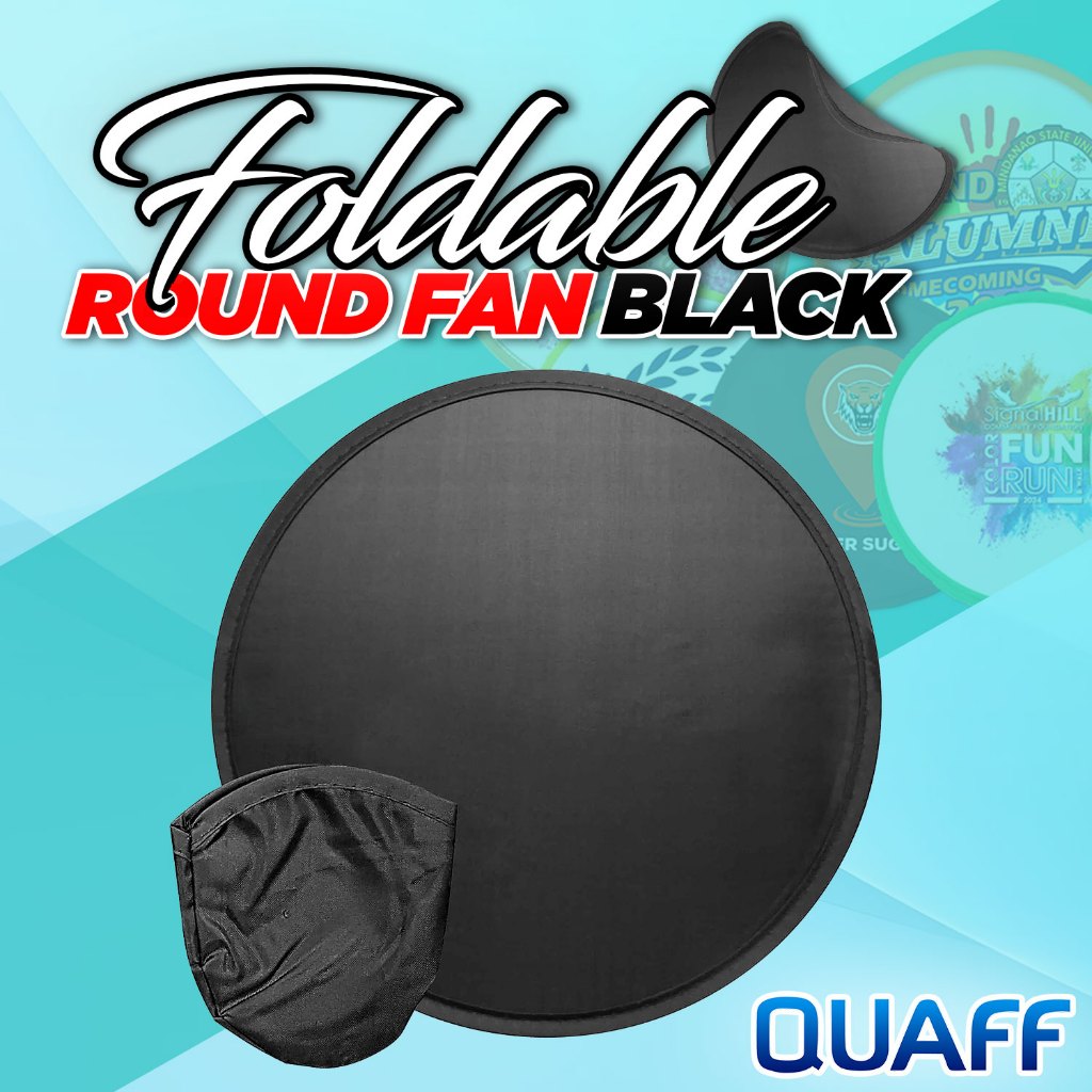 QUAFF Foldable Round Fan Black 9.8 x 9.8 inches 100pcs