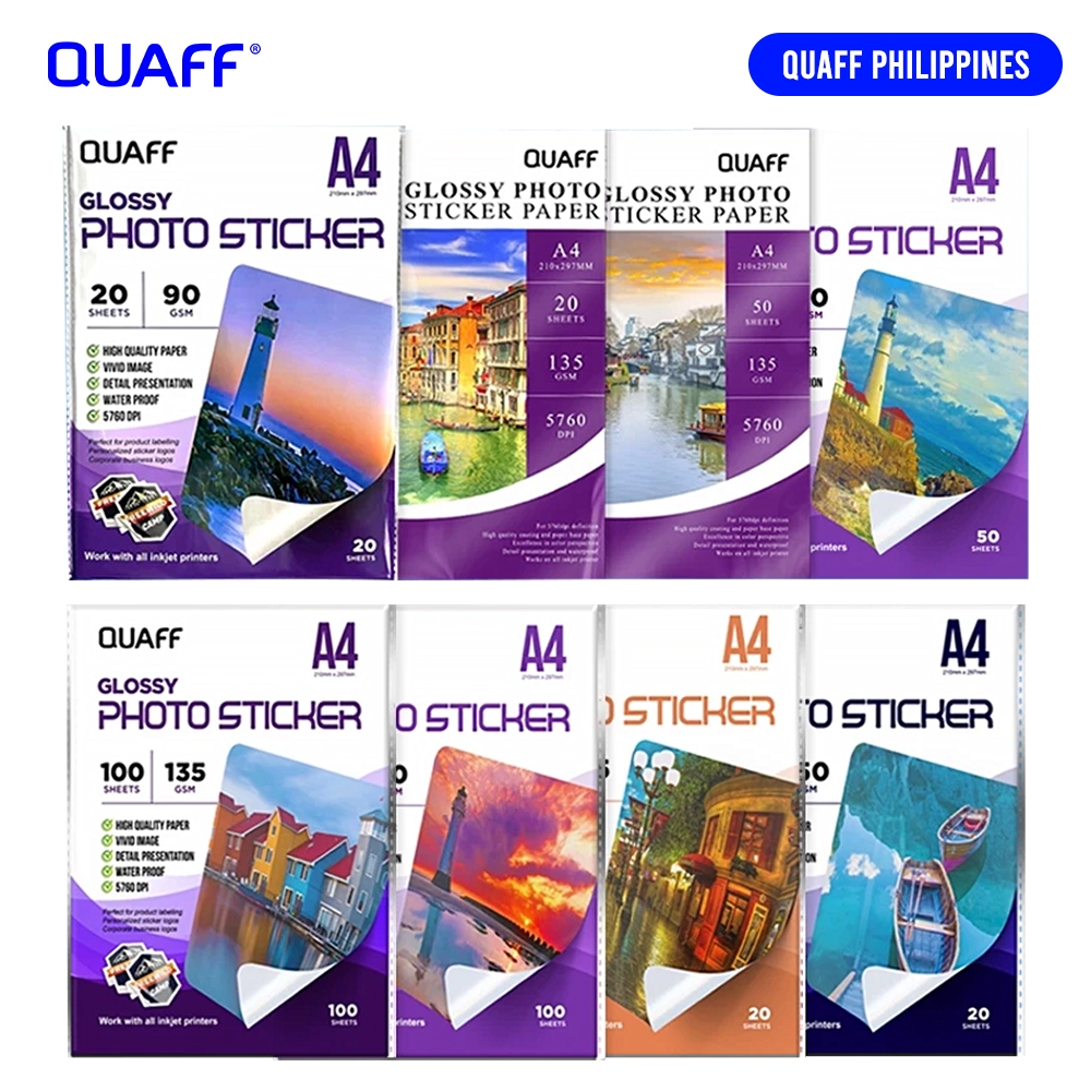QUAFF Glossy/Matte Inkjet Photo Sticker A4 Size 90gsm / 135gsm (20sheets - 50sheets - 100sheets)