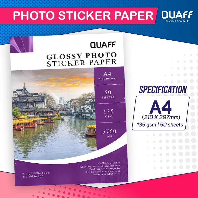 QUAFF Glossy Photo Sticker A4 Size 90gsm | 135gsm Inkjet Sticker