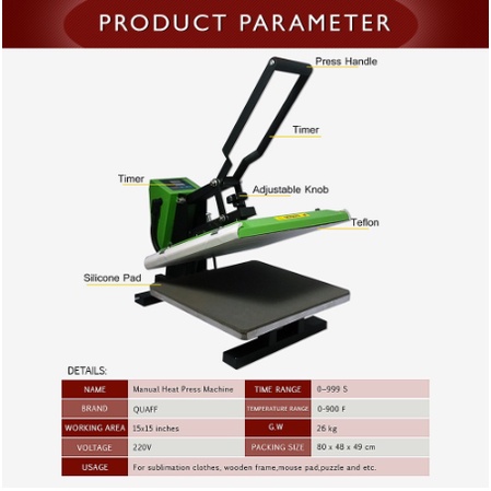 QUAFF Heat Press Machine Green 15x15 inches