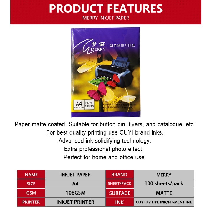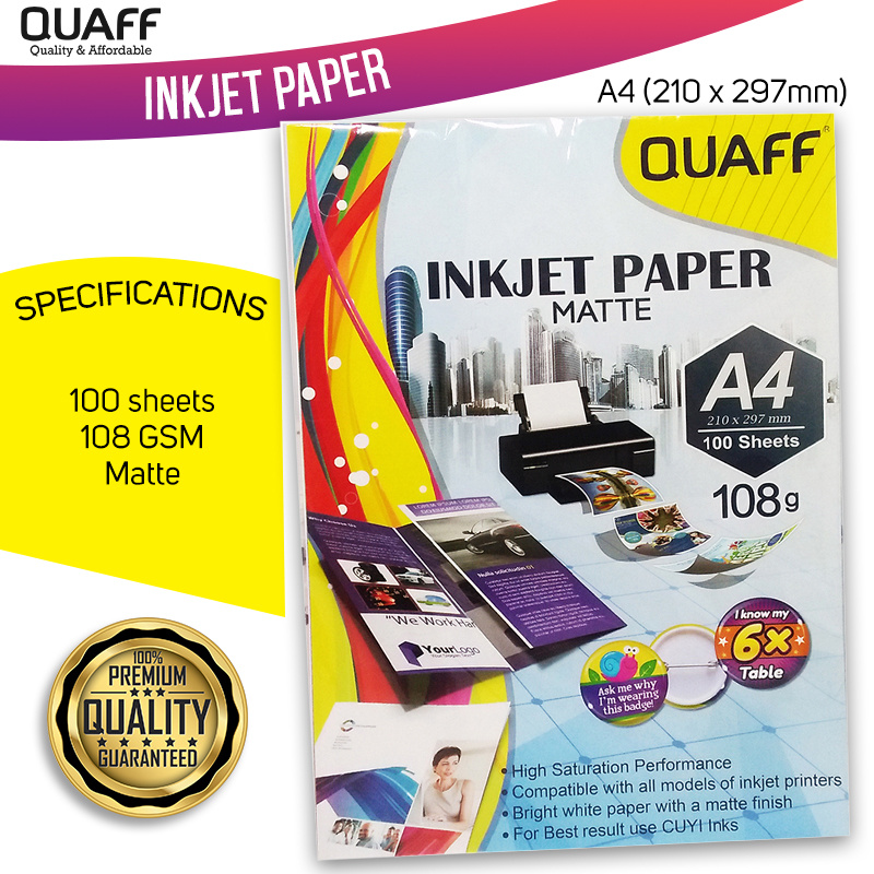 QUAFF Inkjet Paper A4 Size 108gsm- for flyers/button pins paper (100 sheets)