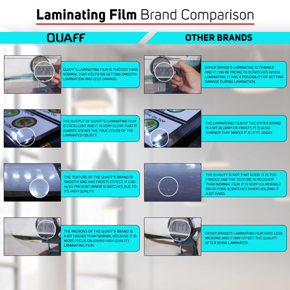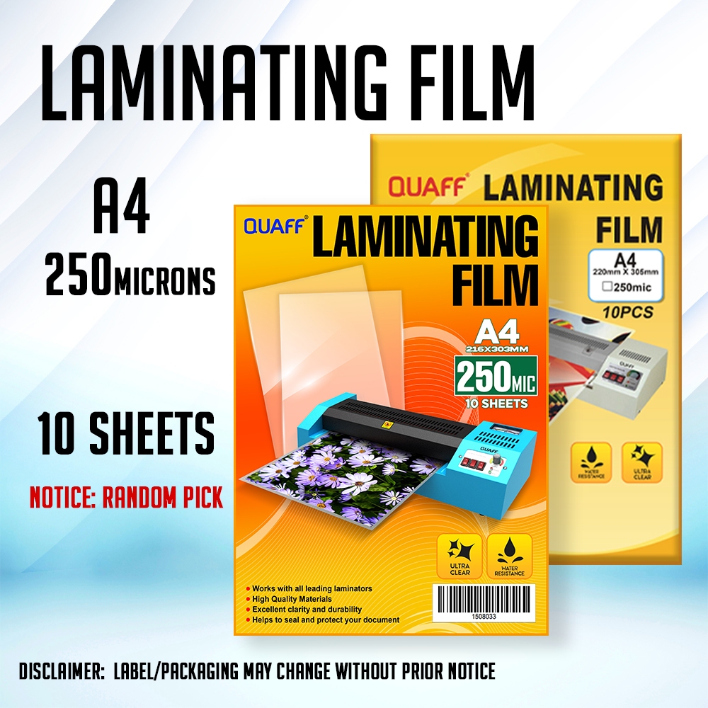 QUAFF Laminating Film 125 Micron - 250 Micron Hot Lamination (Short - A4 - Long) - 10 pcs