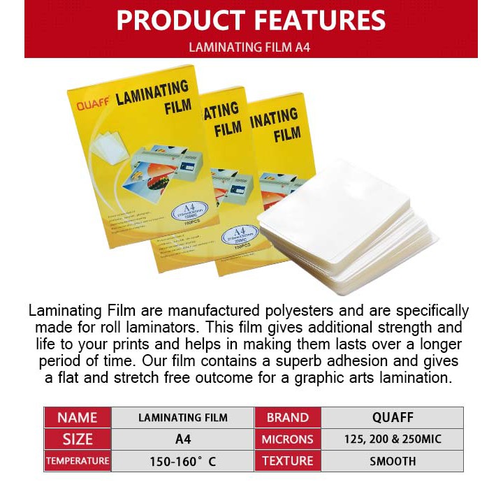 QUAFF Laminating Film Hot Lamination Process Short || A4 || Long Size (100 sheets / pack)