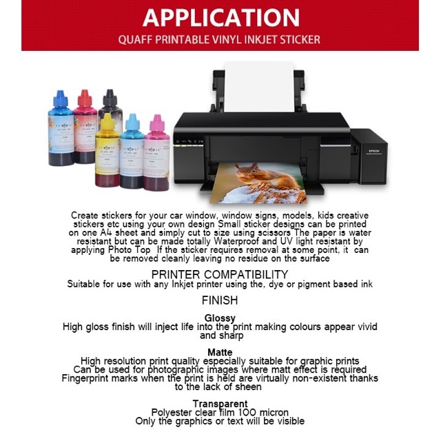 QUAFF PRINTABLE VINYL INKJET STICKER A4 MATTE (20 pcs pck)