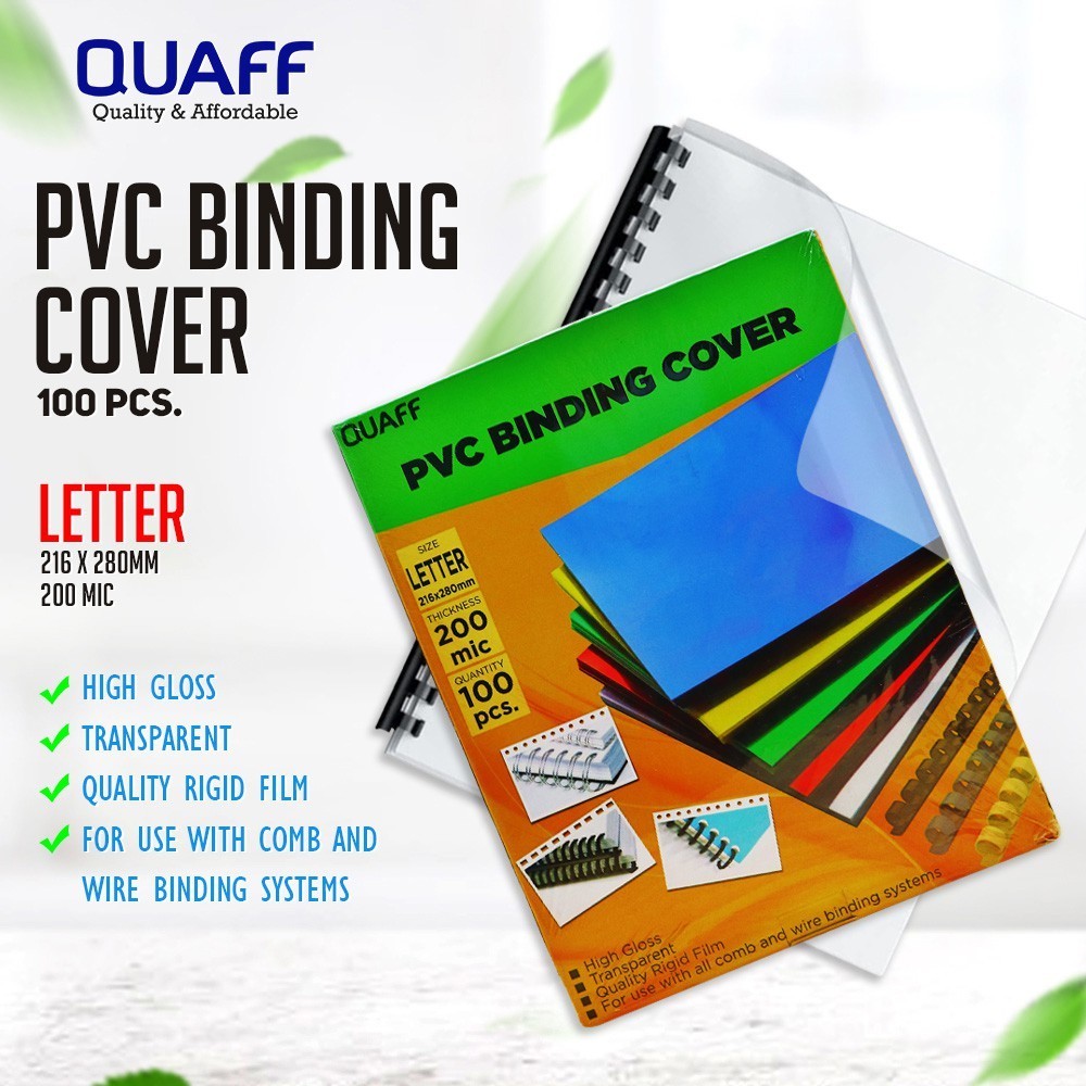 QUAFF PVC Binding Cover Clear 200 Mic A4 Short & Long Size - 100sheets per pack