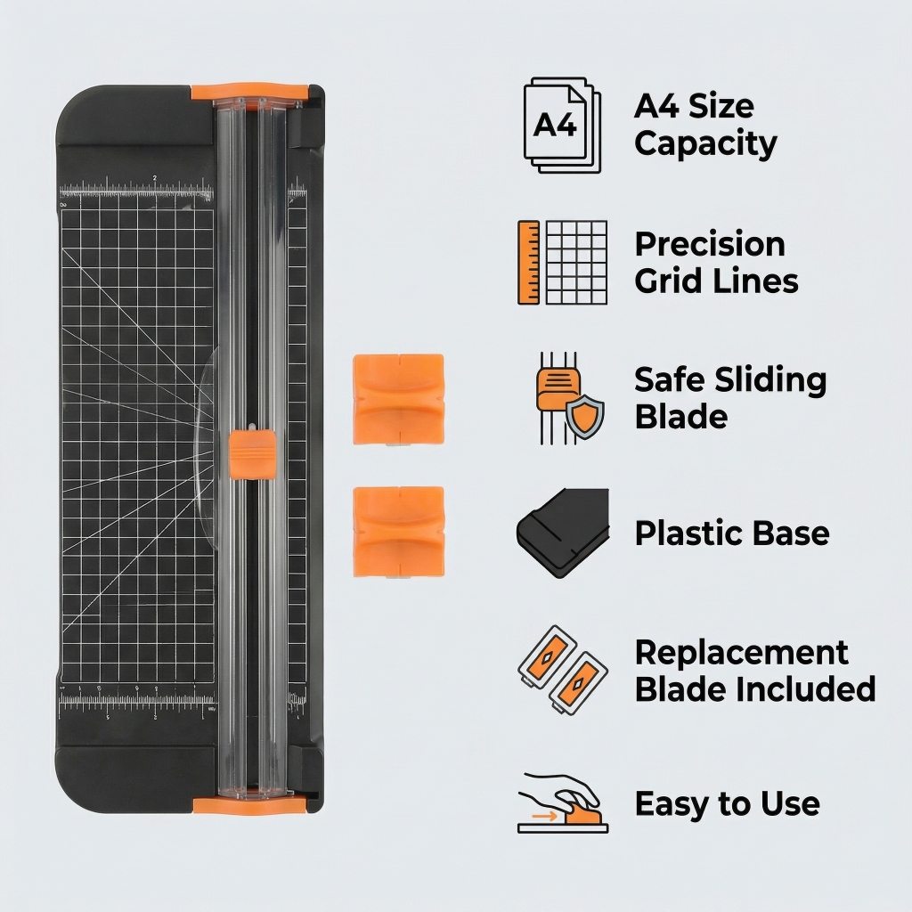 QUAFF Paper Cutter A4 Size Plastic Base Sliding Cutter