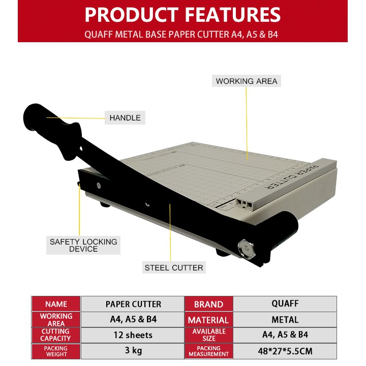 QUAFF Paper Cutter Metal Base / Wood Base A5 / A4 / B4 / A3 Size