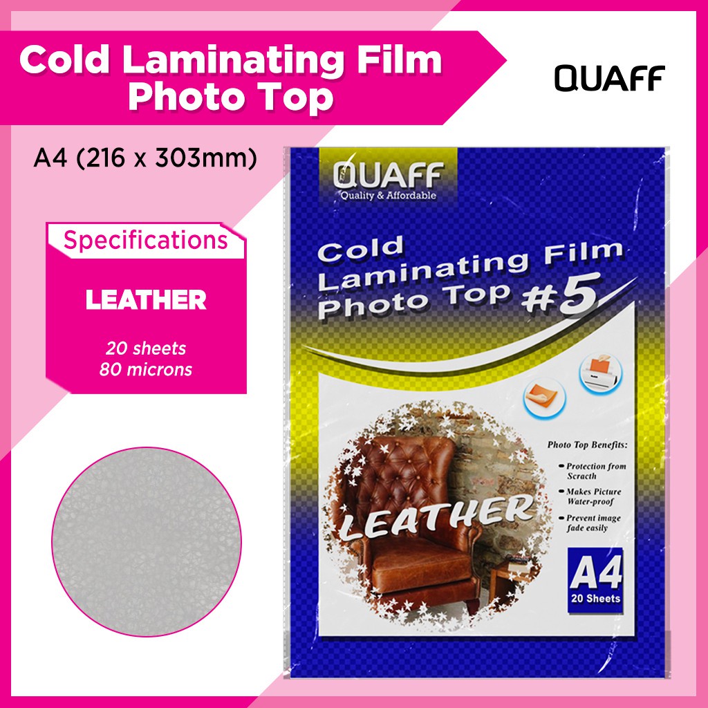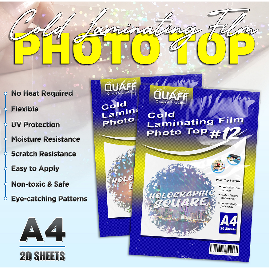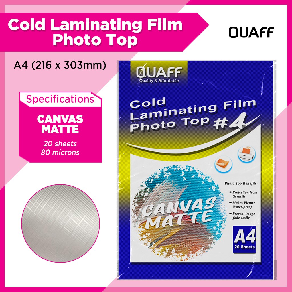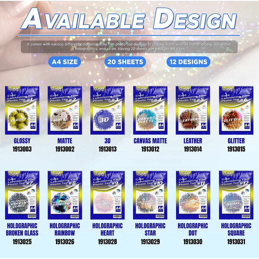 QUAFF Photo Top Cold Laminating Film A4 size 20sheets (Matte/Glossy/Glitter/Leather/3D/Canvas)