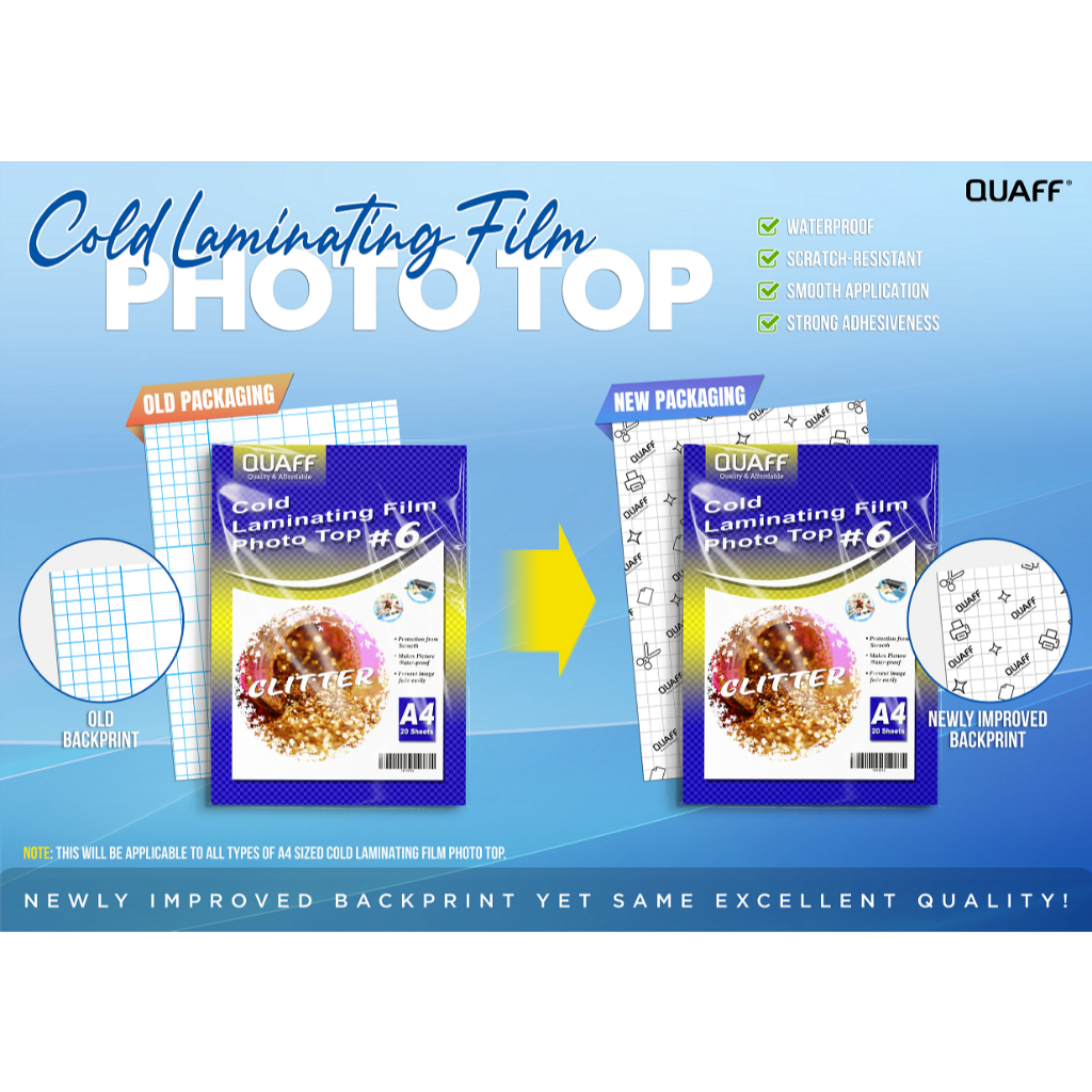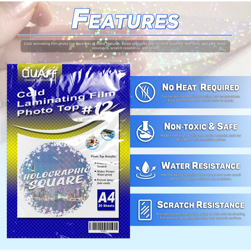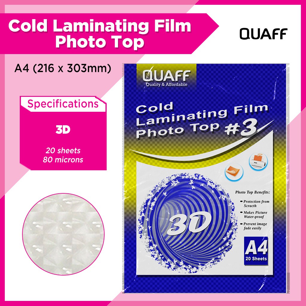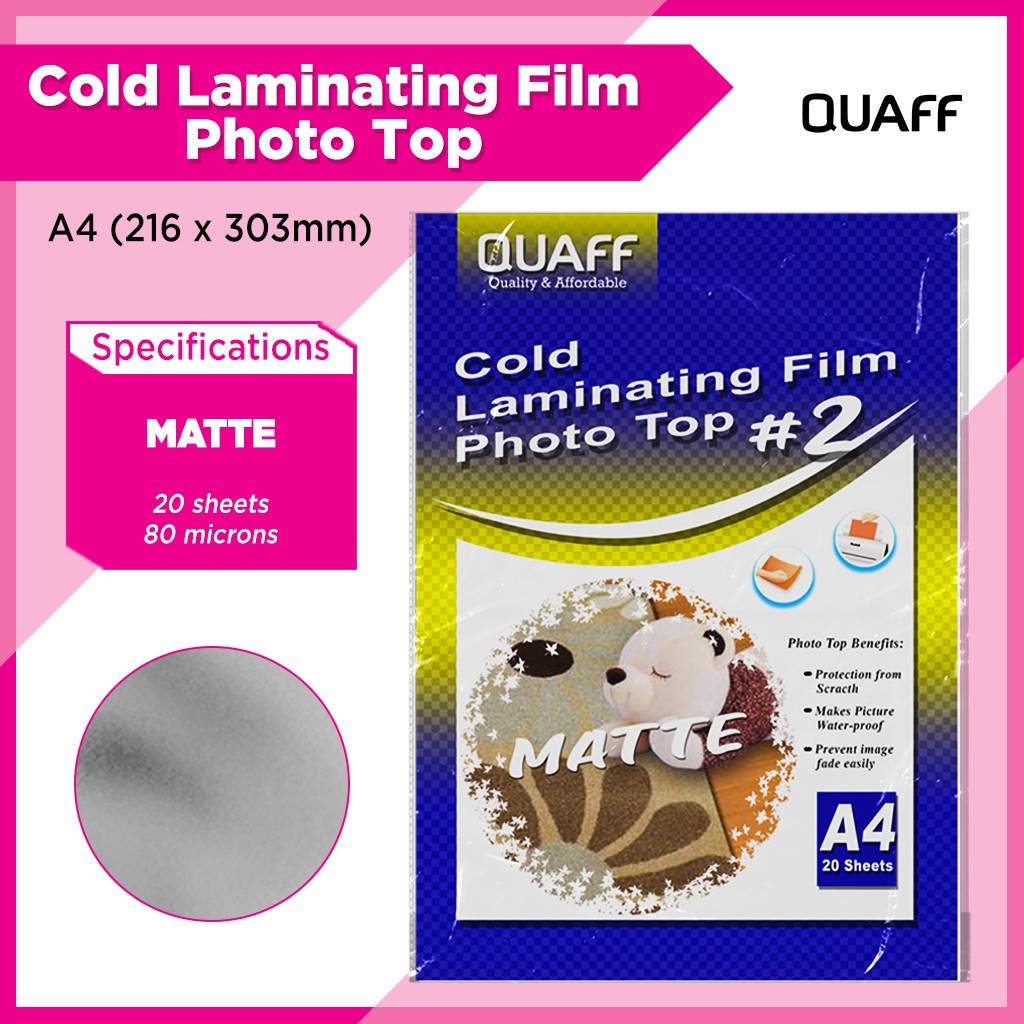 QUAFF Photo Top Cold Laminating Film A4 size 20sheets (Matte/Glossy/Glitter/Leather/3D/Canvas)