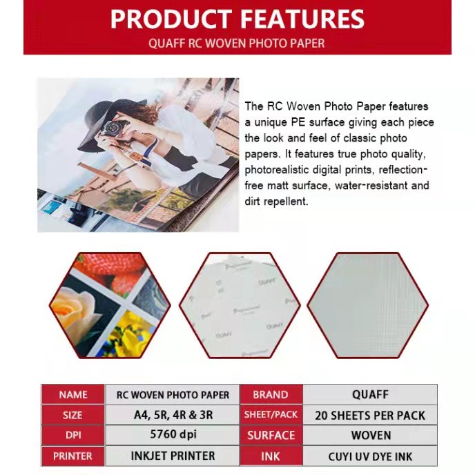 QUAFF RC Woven Photo Paper 260gsm Resin Coated Paper A4 | 5R | 4R | 3R Size (20sheets)