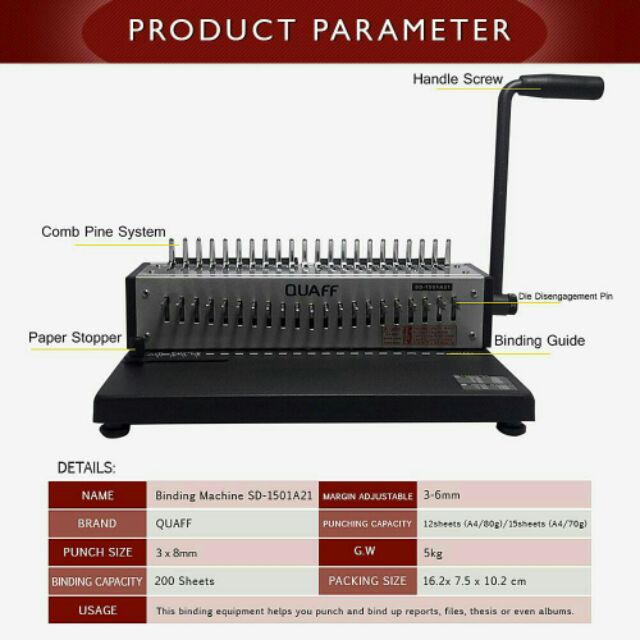 QUAFF RING BINDING MACHINE A4(SD-1501A21) binding knife