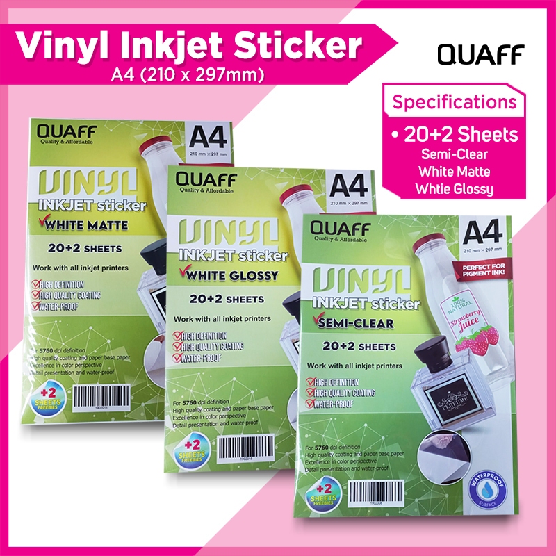 QUAFF Semi Clear Transparent & White Glossy Vinyl Inkjet Sticker Waterproof A4 Size (20 Sheets)