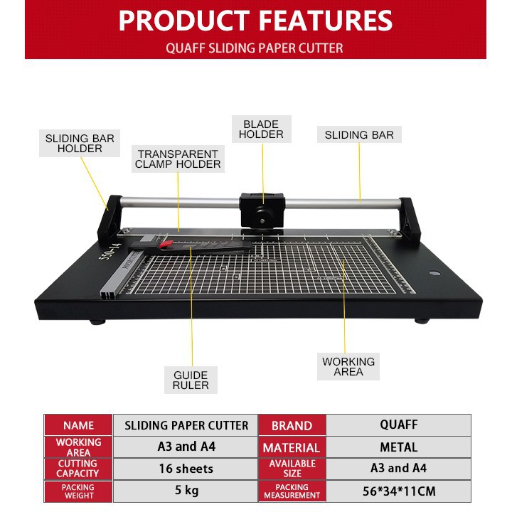 QUAFF Sliding Cutter A4/A3 CUTTING PAPERS QUICKLY CUTTER