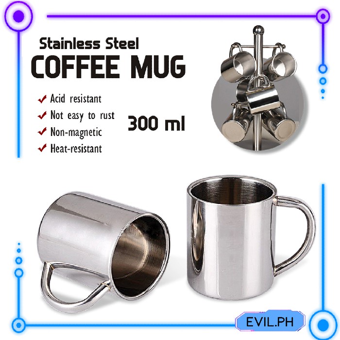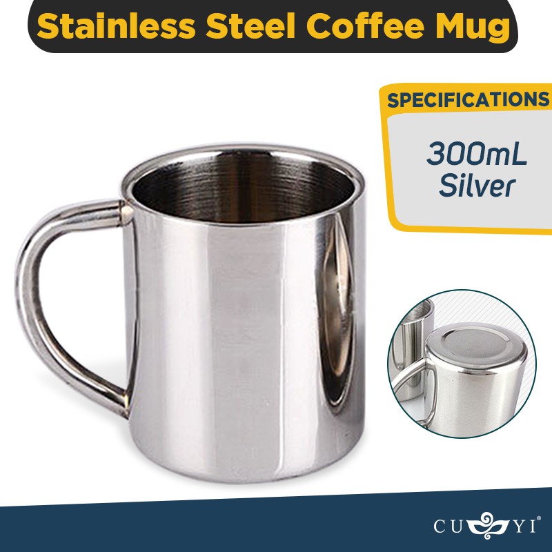 QUAFF Stainless Steel Silver Coffee/Travel Mug 300ML // Enamel Mug