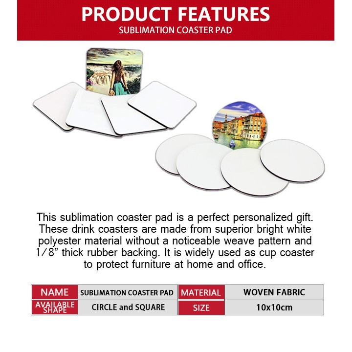 QUAFF Sublimation Printable Coaster Pad Square & Circle - 5pcs per order