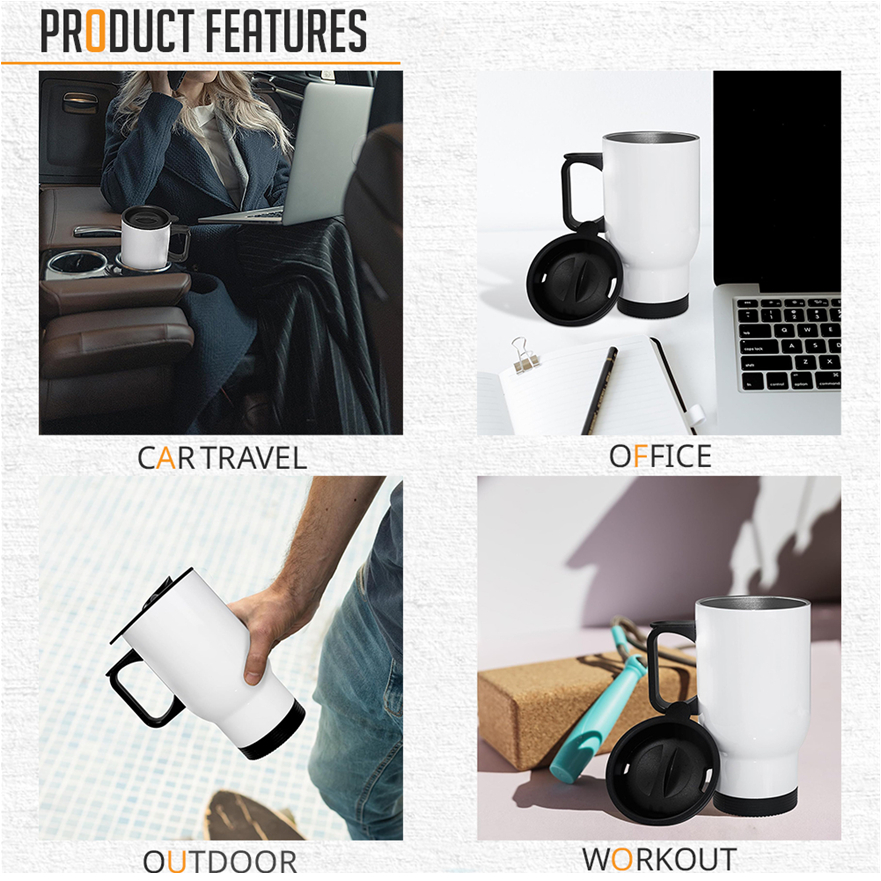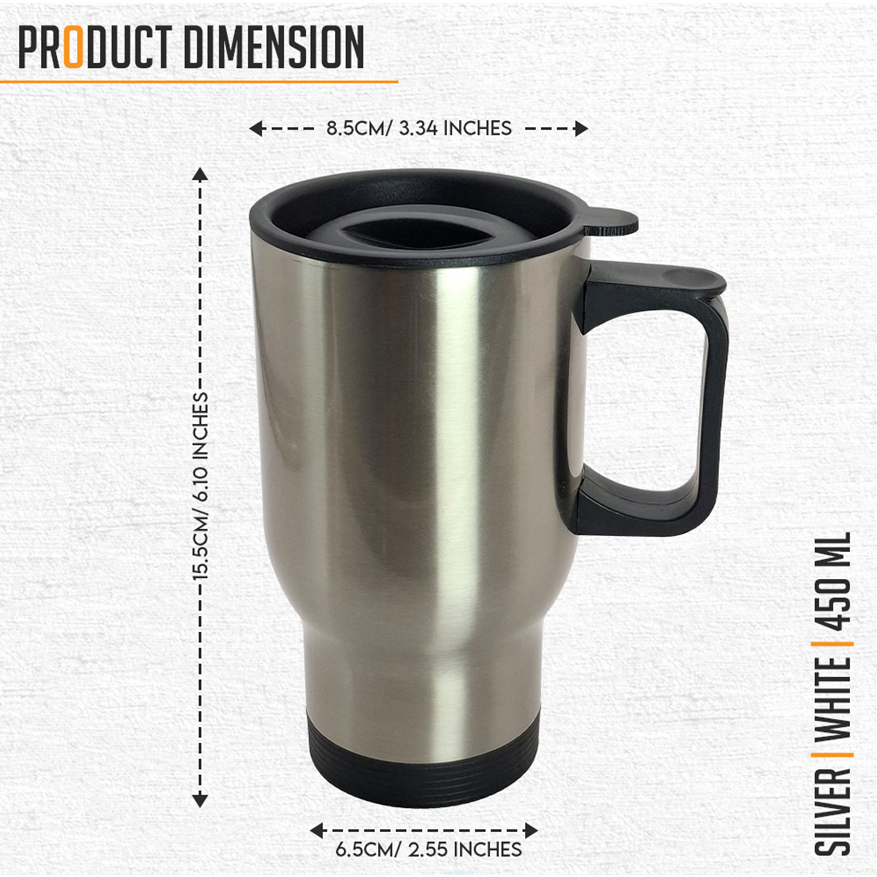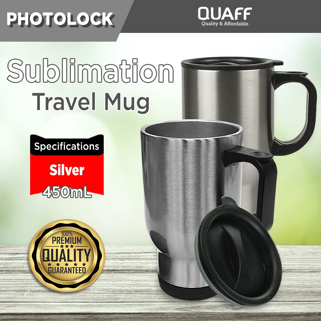 QUAFF Sublimation Stainless Steel Travel Mug 450ml White or Silver Cars Mug