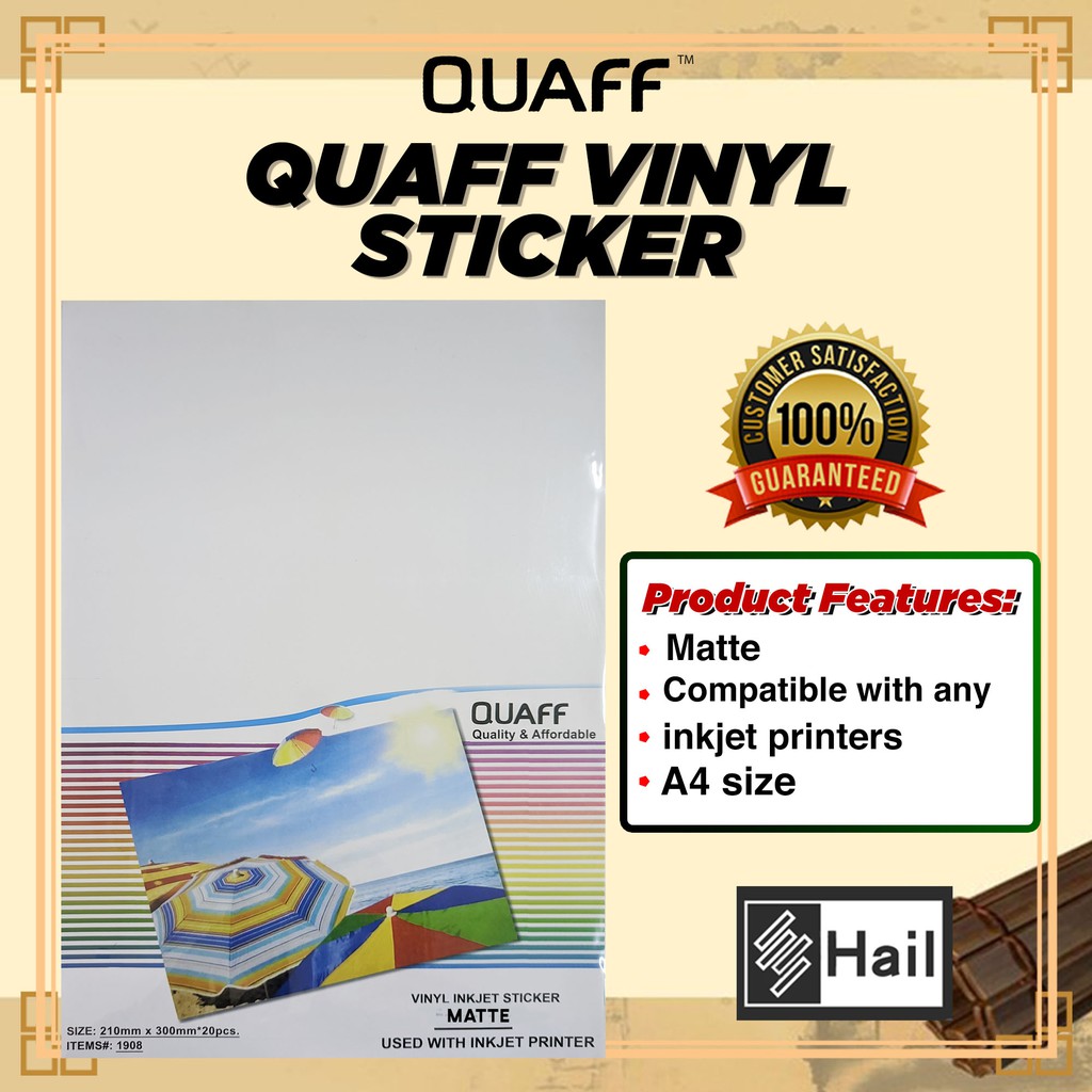 QUAFF VINYL INKJET STICKER A4 (20 SHEETS)