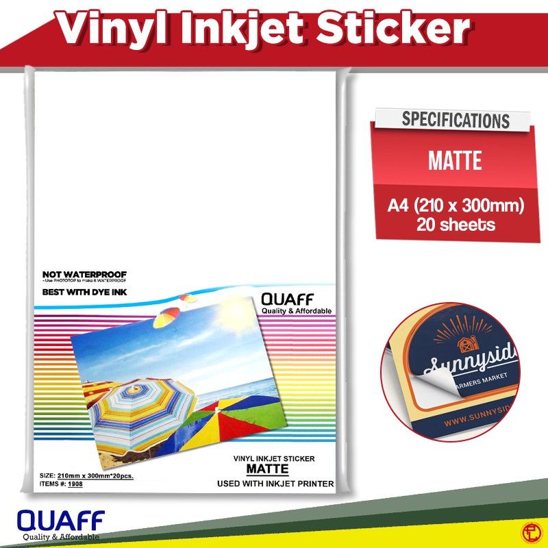 QUAFF VINYL STICKER A4 SIZE MATTE,GLOSSY,TRANSPARENT 20SHEETS
