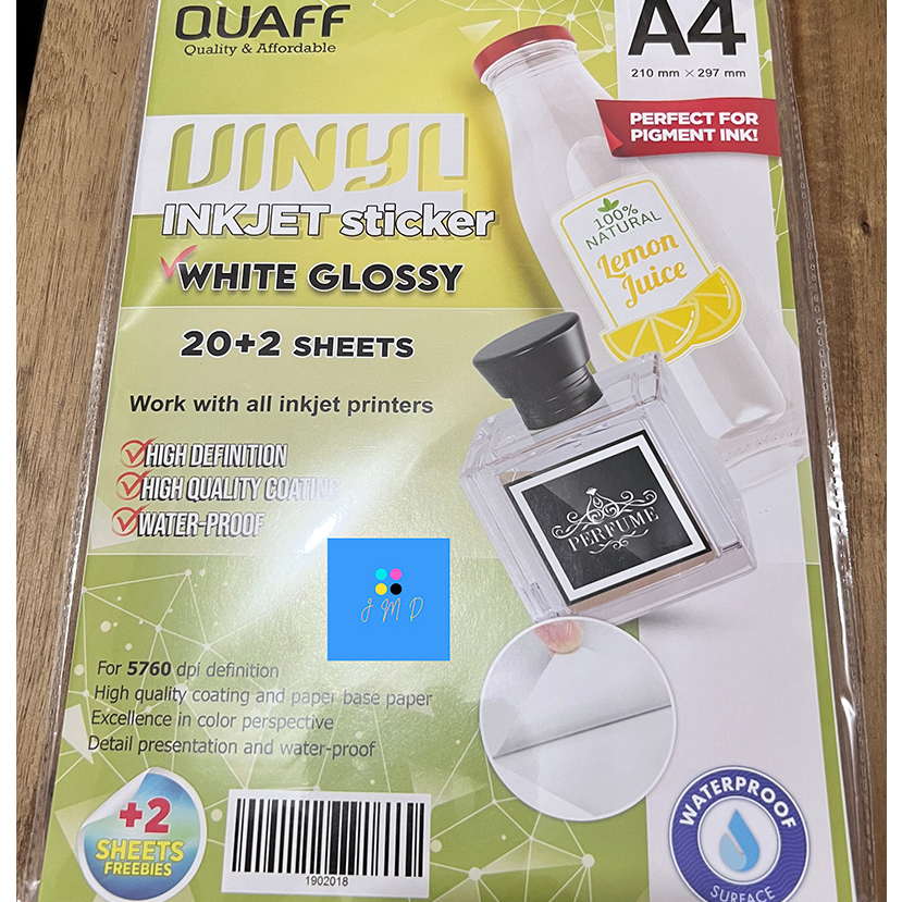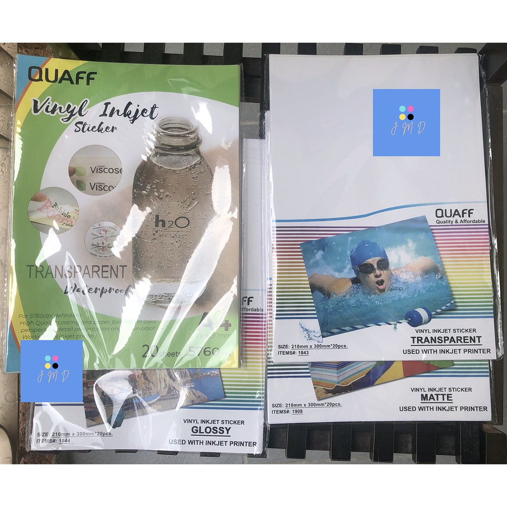 QUAFF Vinyl Inkjet Sticker A4 Size ( Transparent / Glossy / Matte / Waterproof Glossy)