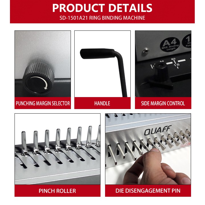 QUAFF WIRE TD-1501 / RING SD-1201 / RING SD-1501 / SPIRAL PD-1501 Binding Machine Heavy Duty A4 Size