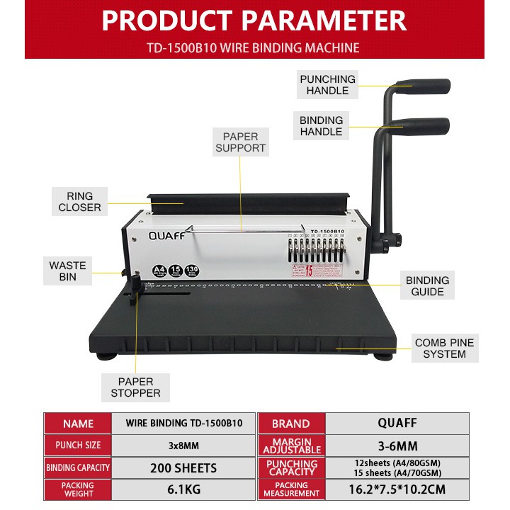 QUAFF Wire Binding Machine A4 (TD-1500B10)