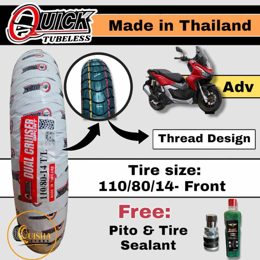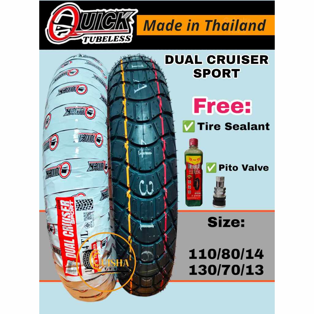QUICK TIRE DUAL CRUISER SPORT TUBELESS 110/80-14 & 130/70-13 (free pito & tire sealant) MADE IN THAI