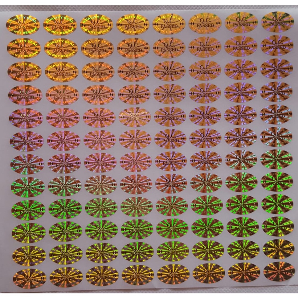 QC Pass Oval Gold Hologram Sticker Size 1x1.8 cm
