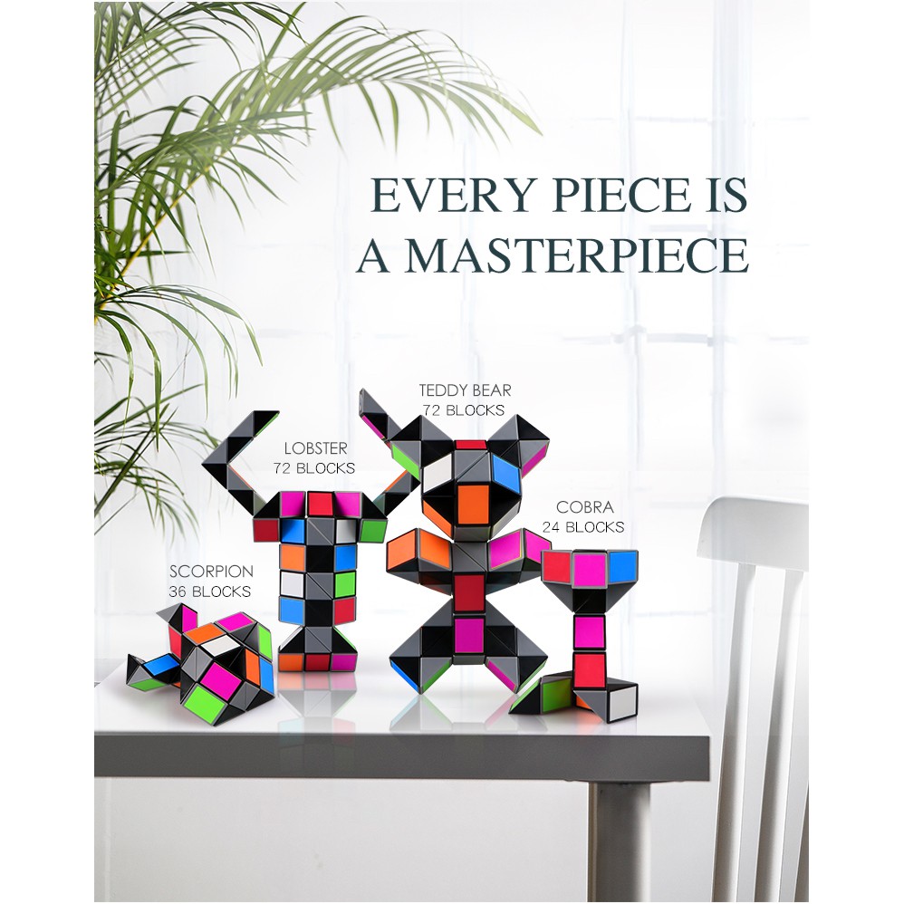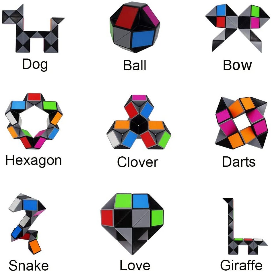 QiYi Magic Snake 60 Blocks Variety Magic Ruler Cube Puzzle Cube Twist Puzzle for Children (Black and Colorful )