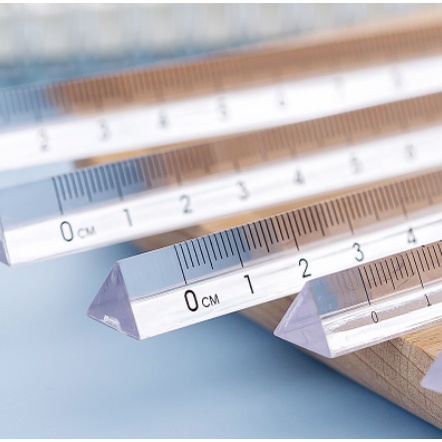 Qjoq.ph | 1pc Transparent triangle ruler three-edged three-dimensional scale tool ruler