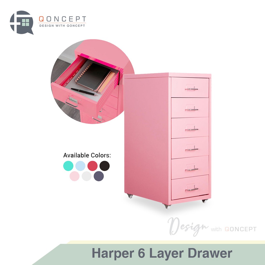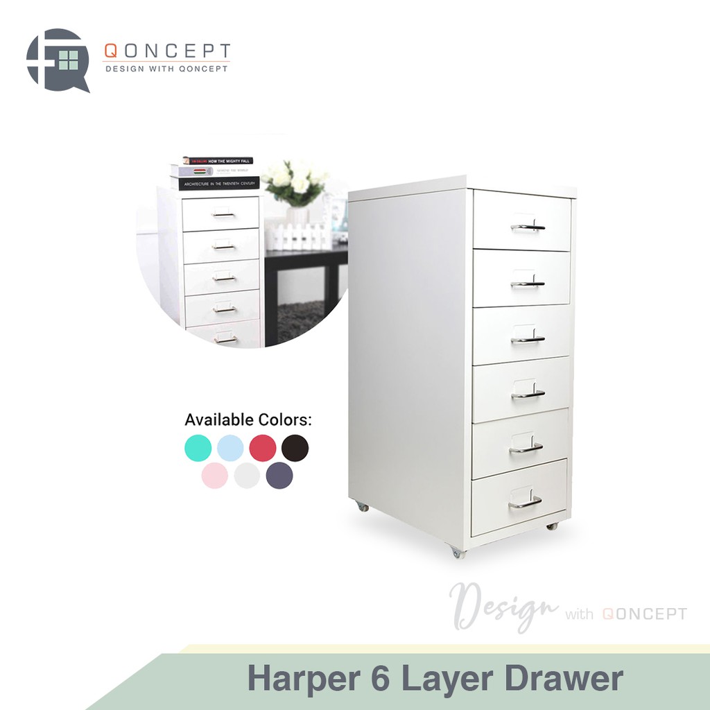 Qoncept Living Harper 6-Layer Minimalist Home Office Drawer File Cabinet Storage