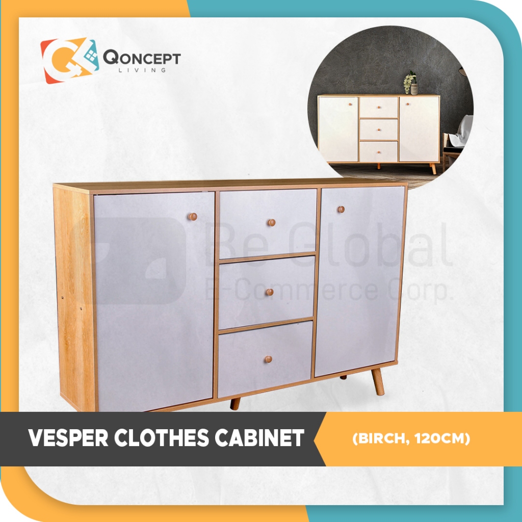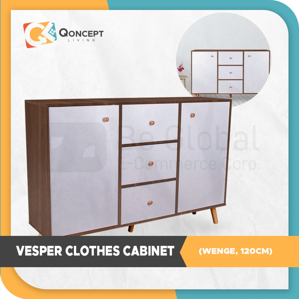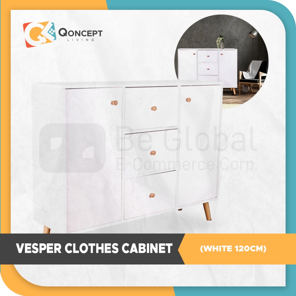 Qoncept Living Vesper Space Saver Wooden Clothes Cabinet with Drawer 120cm