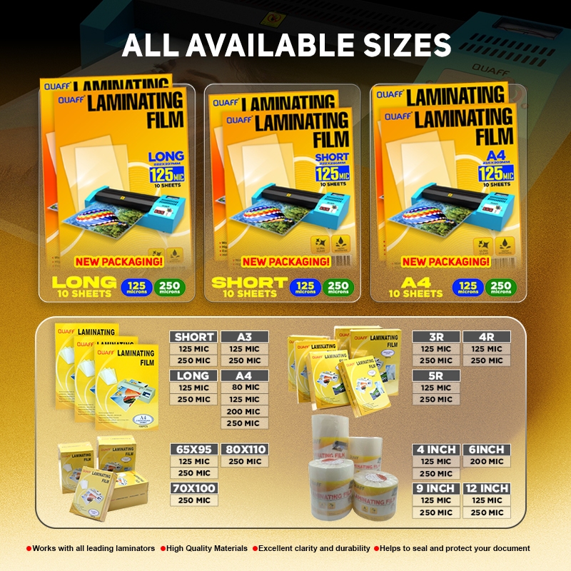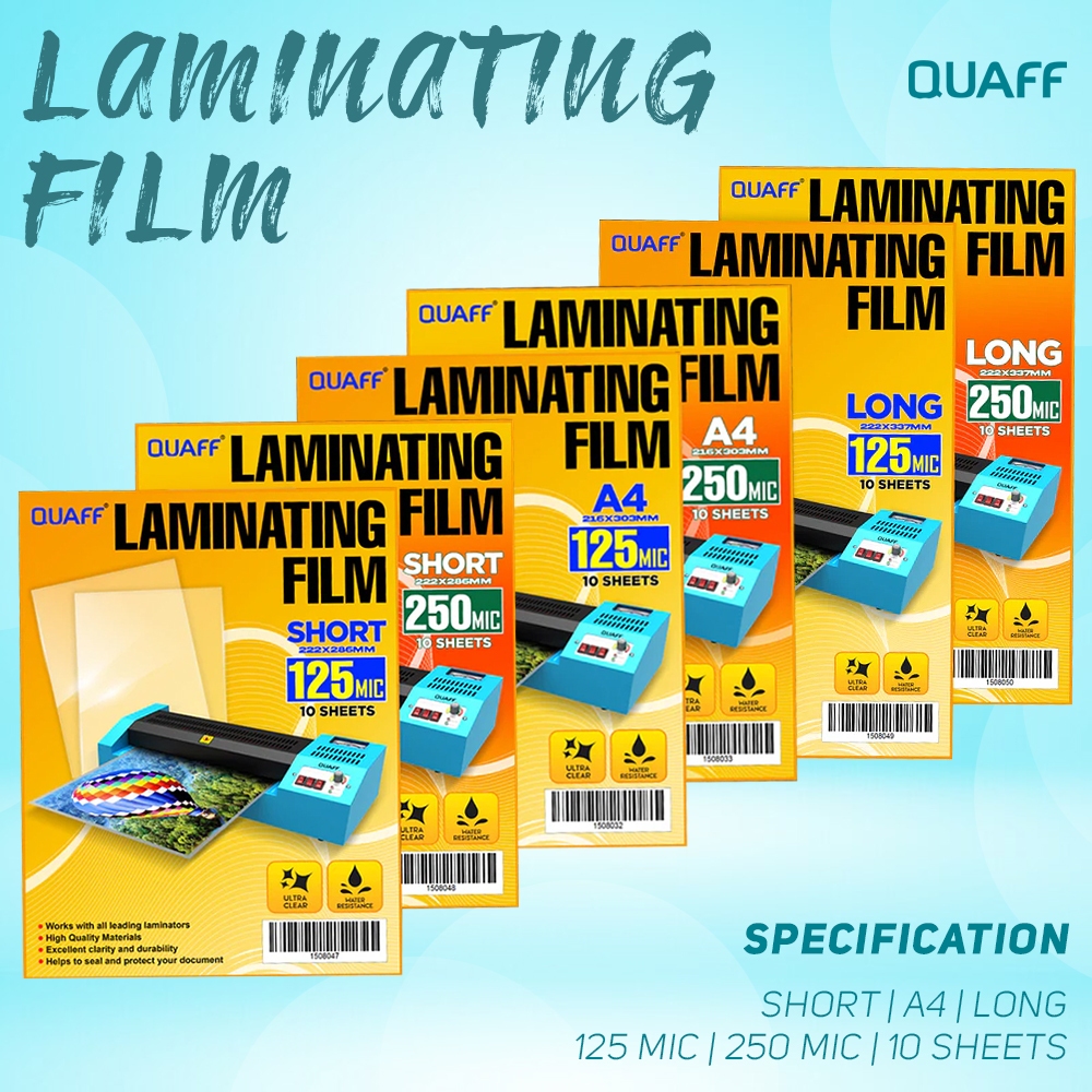 Quaff 10 Sheets Laminating Film 125 Micron & 250 Hot Lamination Process (Short - A4 -Long)