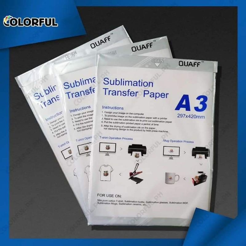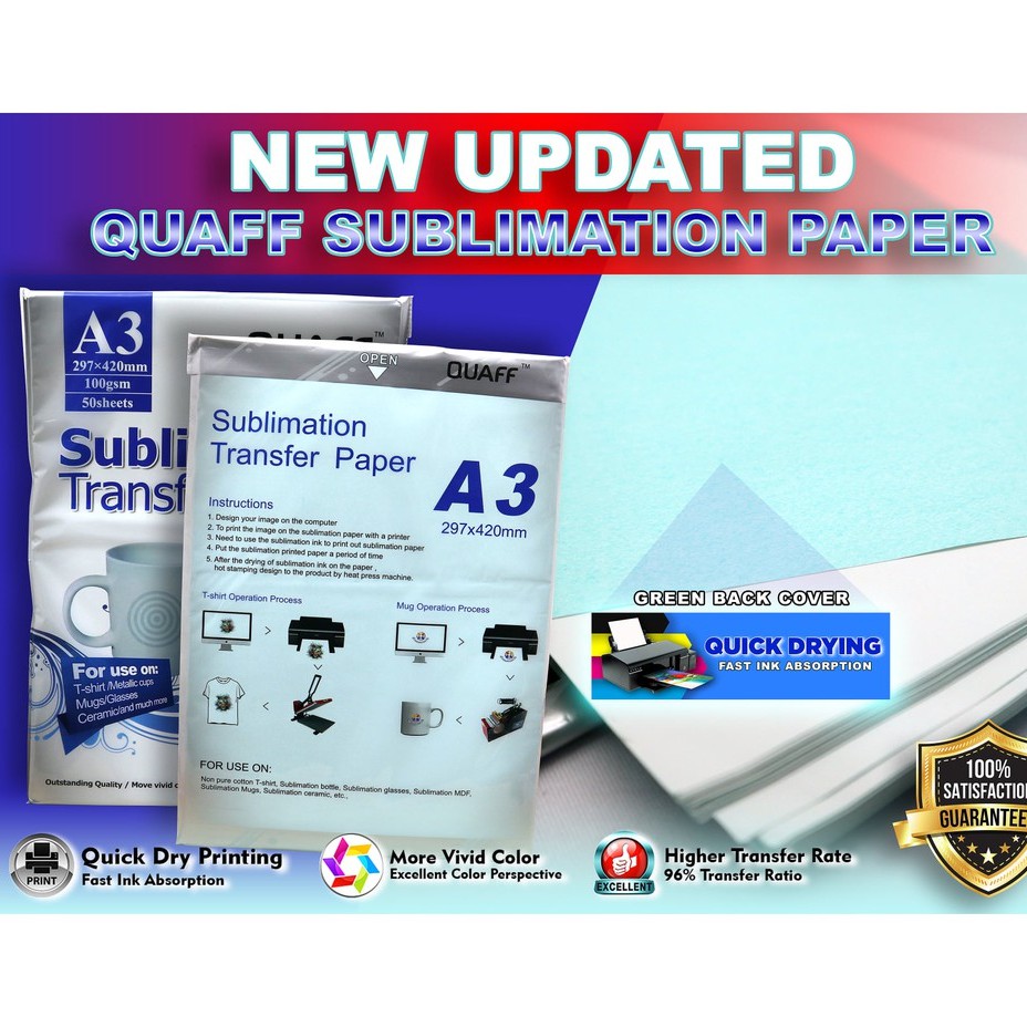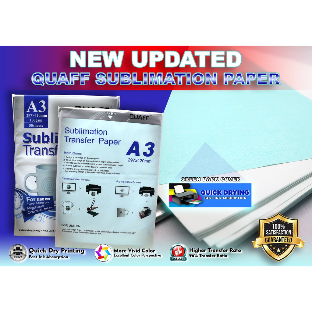 Quaff A3 Sublimation Transfer Paper 100gsm/50pcs For Inkjet Printer Sublimation Printing