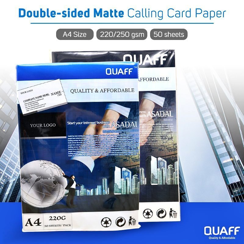 Quaff A4 Size Double Sided Matte Calling Card Paper 50 Sheets Pack