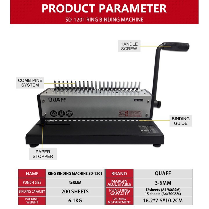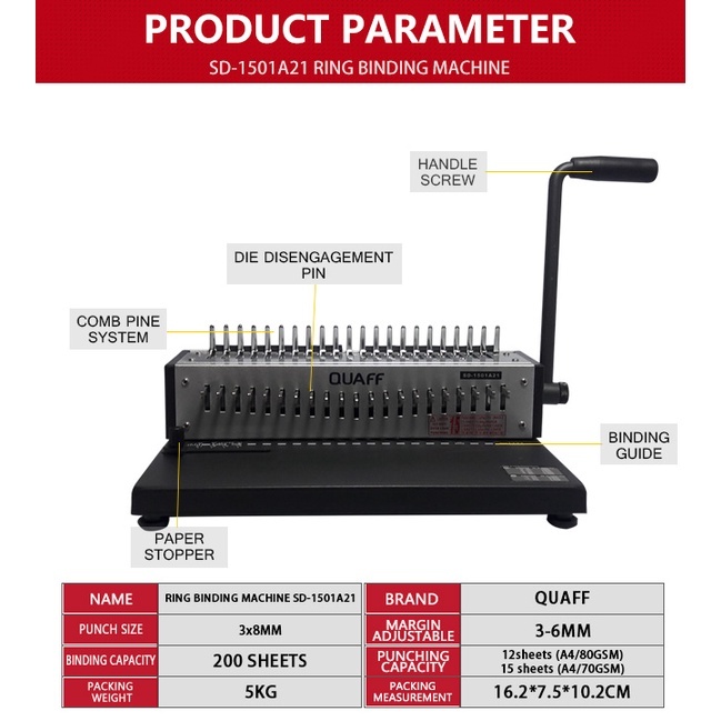 Quaff Binding Machine A4 Size Heavy Duty Binder