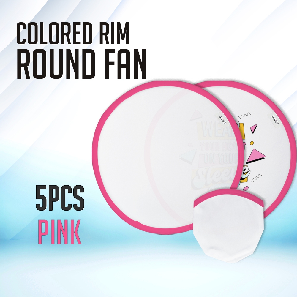 Quaff Blank Printable Foldable Round Fan White With Rim Color 5 Pcs